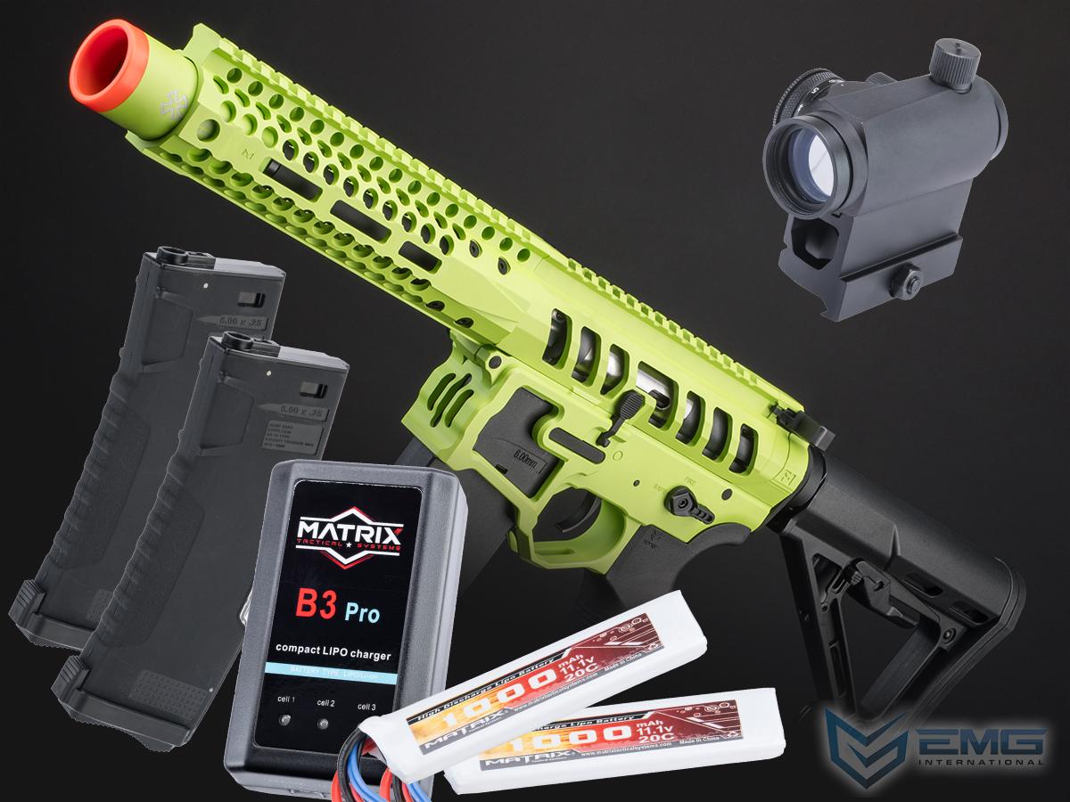 EMG F1 PDW AR15 Edge II Airsoft AEG Training Rifle w/ RS3 Stock & Kestrel V2 MOSFET (Model: 3G Style 2 / Lime / Go Airsoft Package)