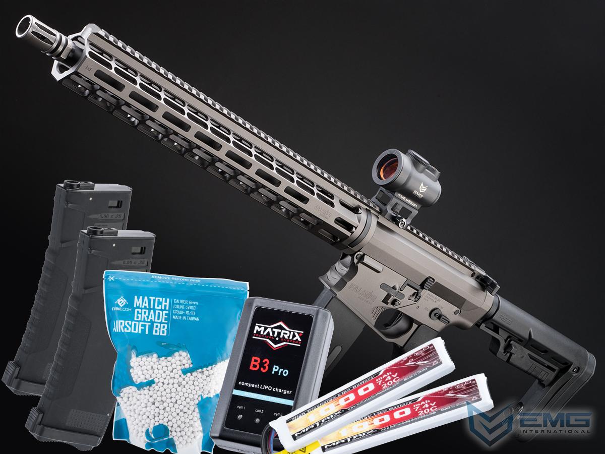 - Package Includes: Gun, High Cap Magazine, 2x BAMF Gen2 Mid Cap Magazines, 2x Matrix 7.4v LiPo Batteries, LiPo Charger, 5000rds EMG .25g BBs, Manual
