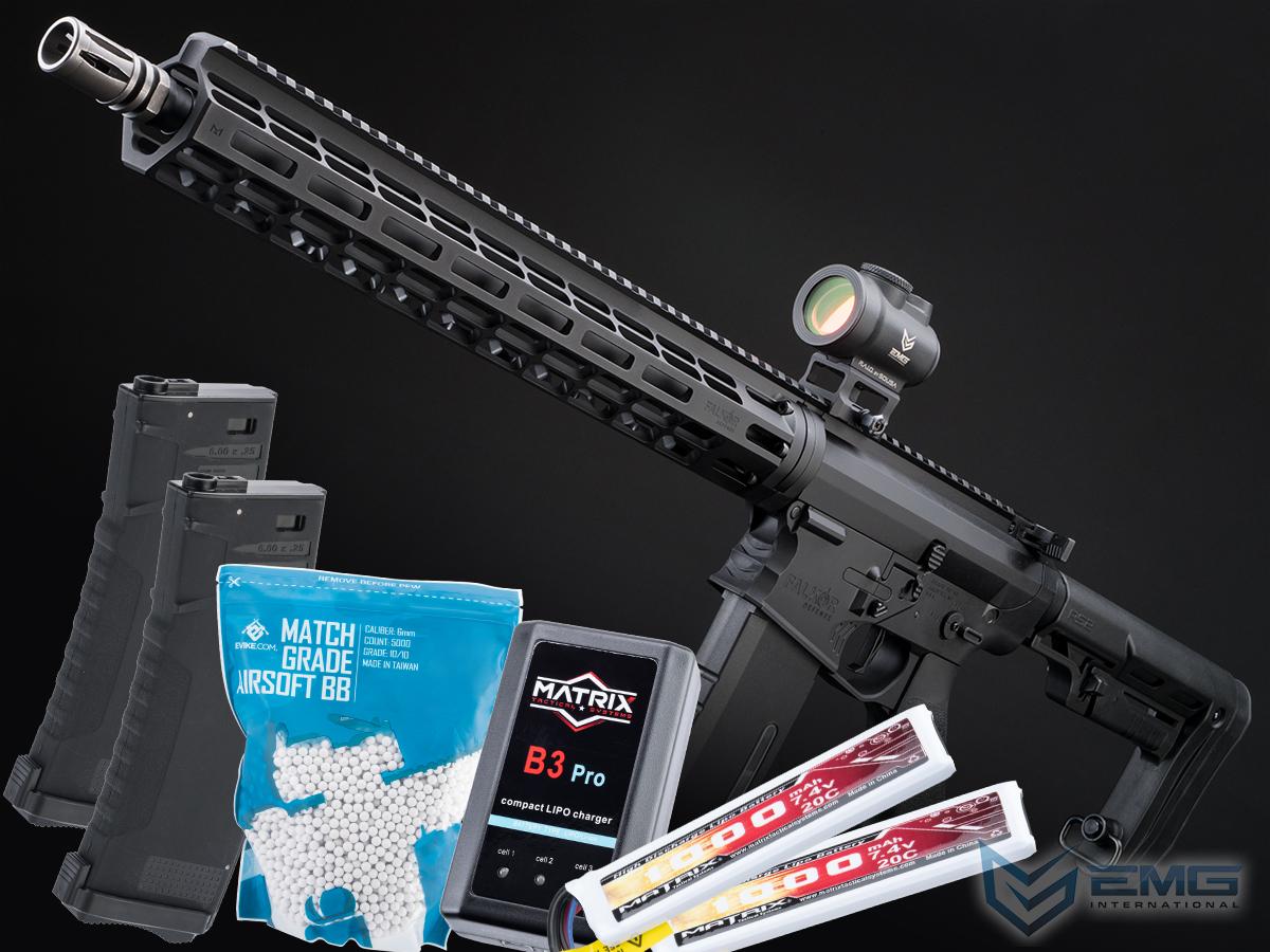 Package Includes: Gun, High Cap Magazine, 2x BAMF Gen2 Mid Cap Magazines, 2x Matrix 7.4v LiPo Batteries, LiPo Charger, 5000rds EMG .25g BBs, Manual