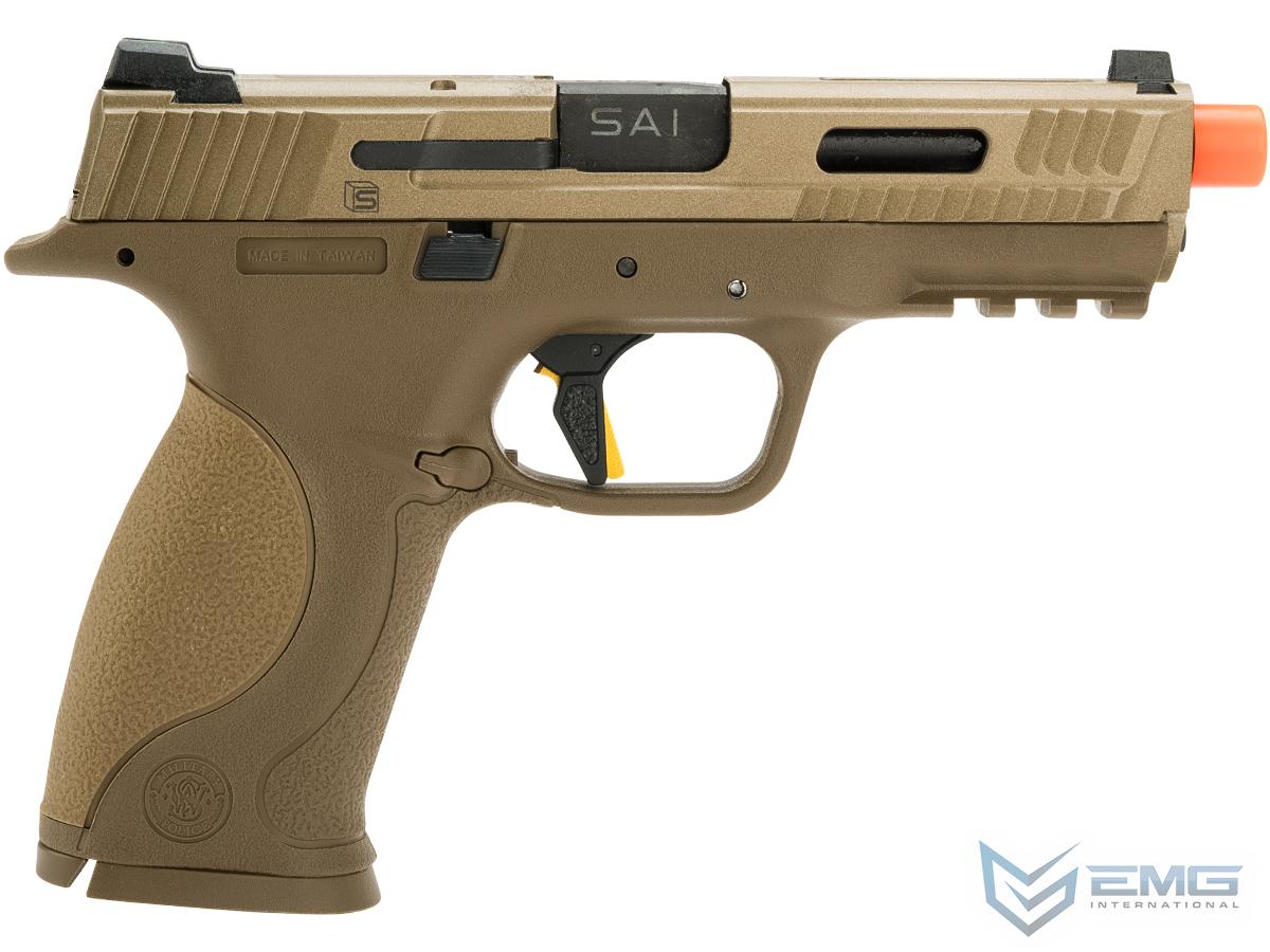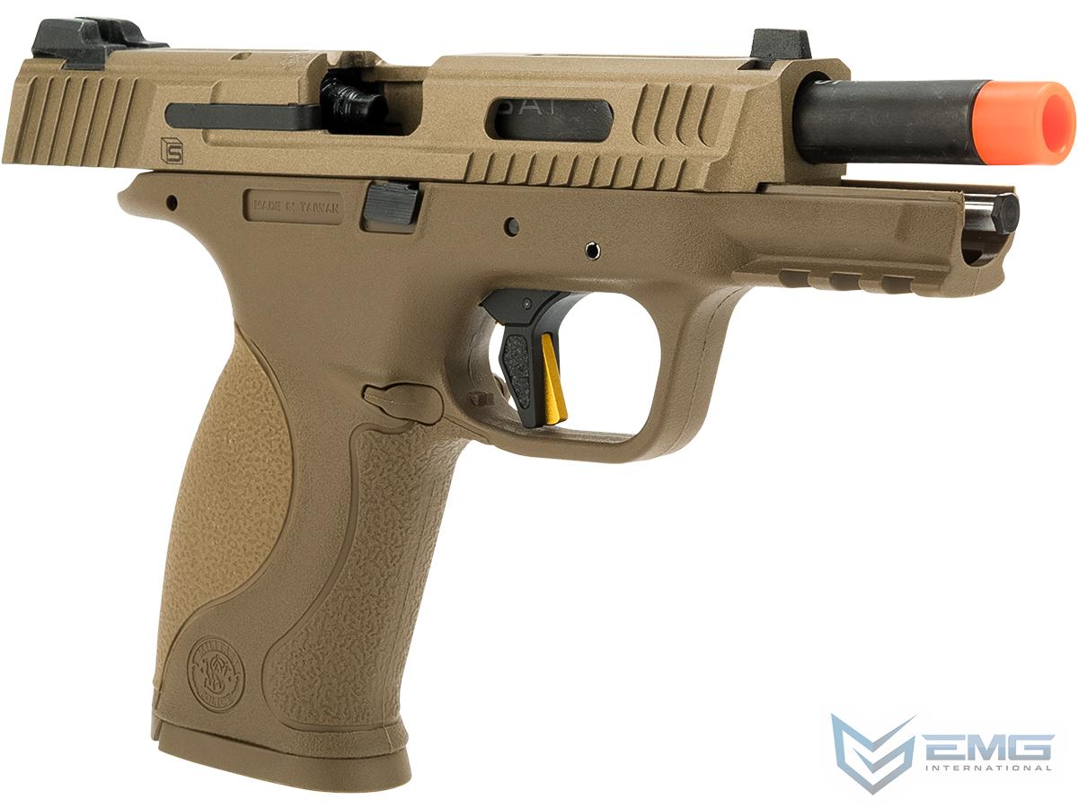 EMG / SAI / Smith & Wesson Licensed M&P 9 Full Size Airsoft GBB Pistol with Enhanced Angel Custom Trigger (Package: Tan / Gun Only)
