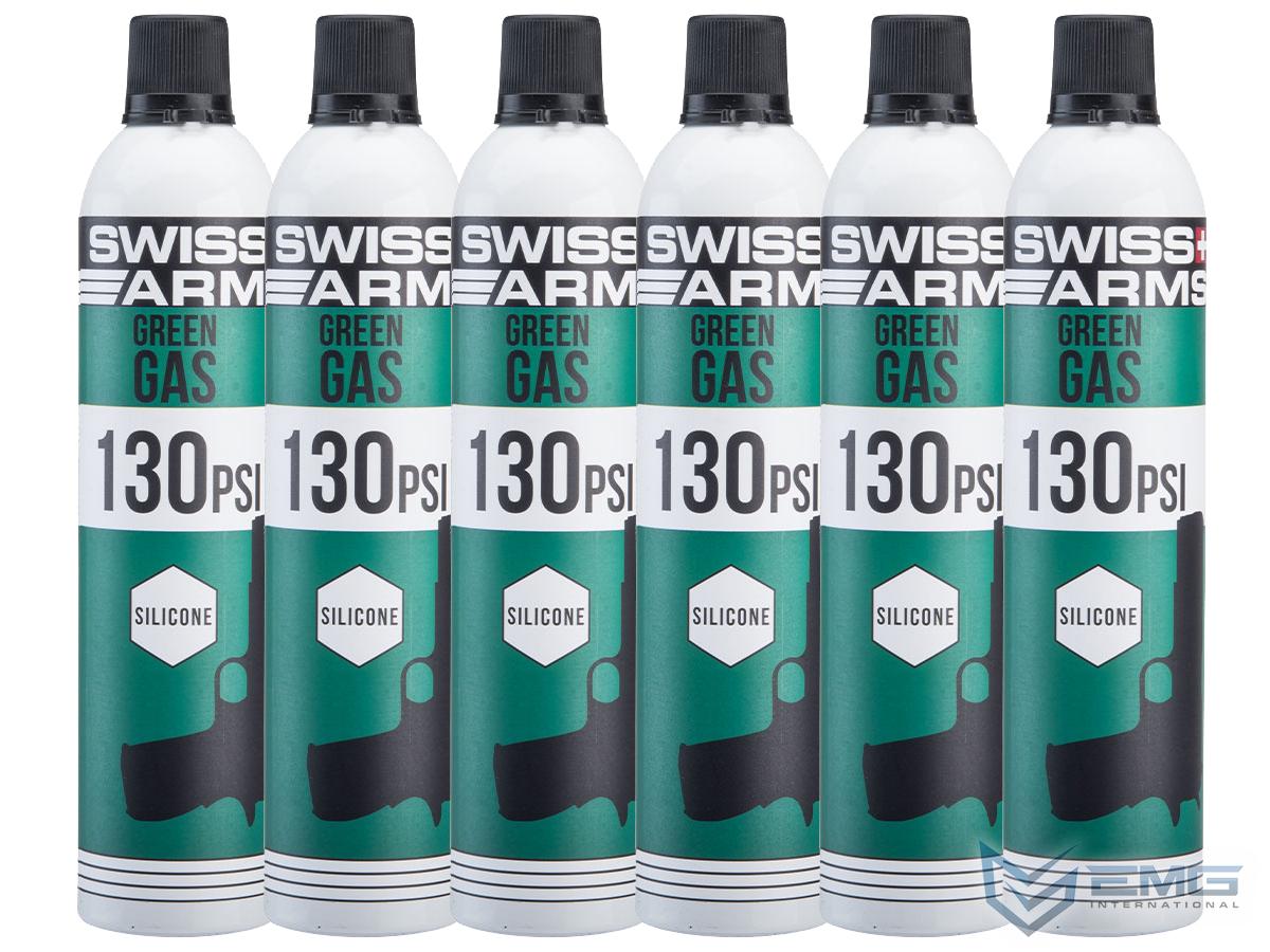 Swiss Arms Green Gas Bottle (Model: Lubricated / 600ml / 130 PSI / Pack of 6)
