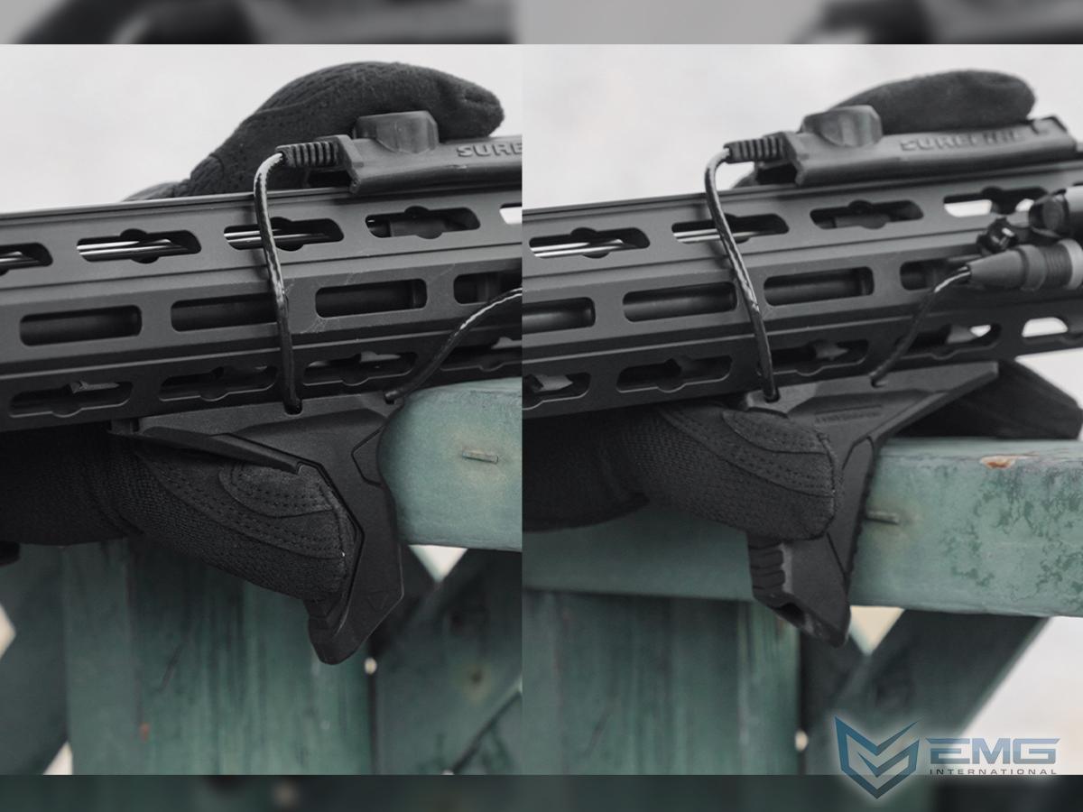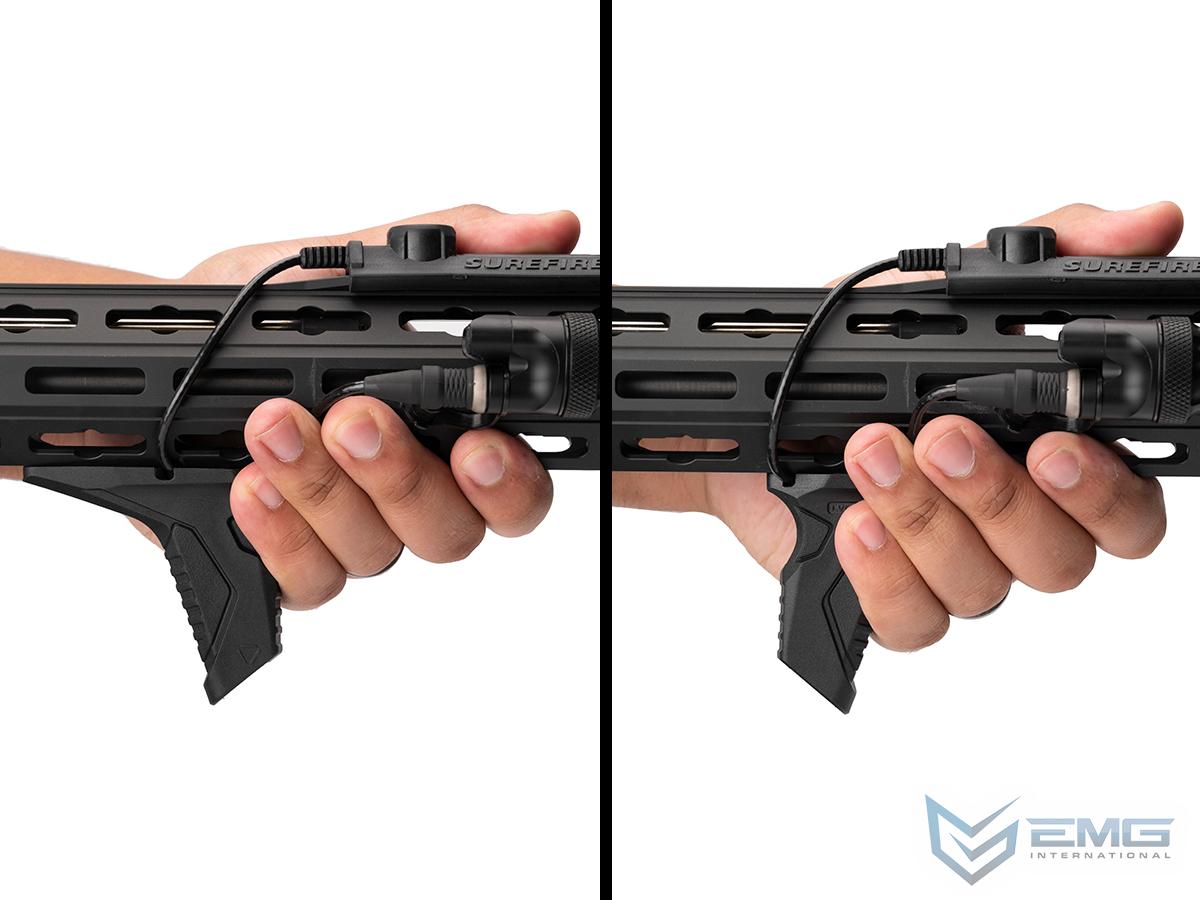 - Rearward angle for pull style grip options for better weapon manipulation control