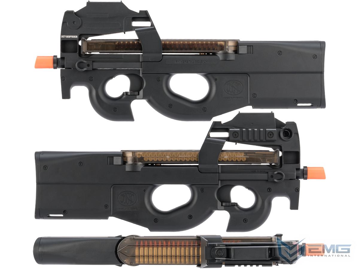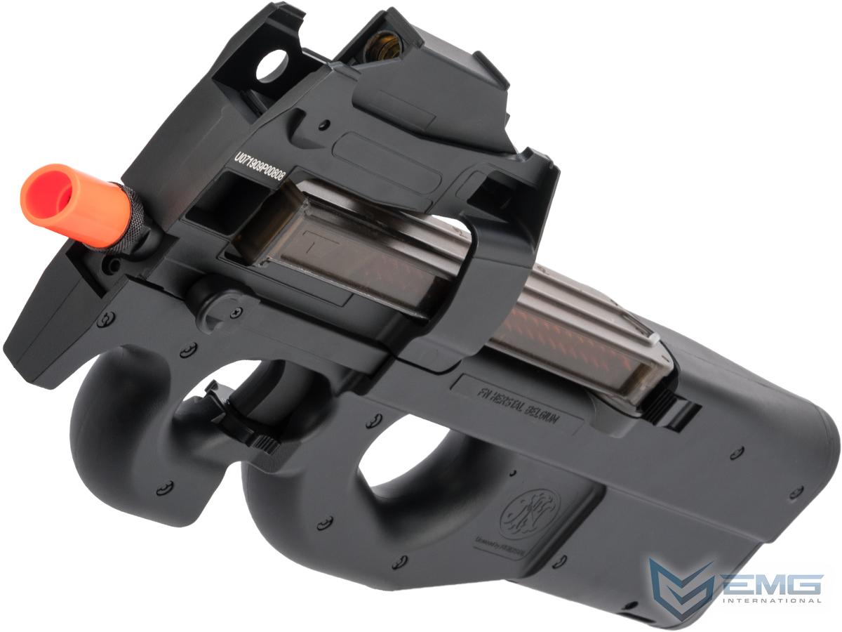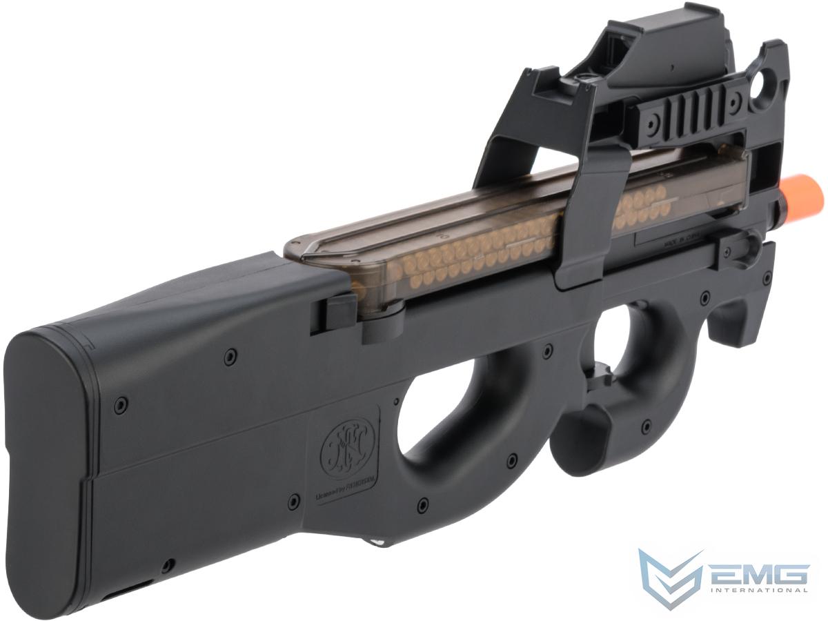 The FN® Licensed Airsoft P90 accurately replicates the great handling and ergonomics of the real P90 with its fully ambidextrous control layout and comfortable grip. Just like the actual P90, the FN® Licensed Airsoft replica consists of a durable reinforced polymer frame with metal barrel and upper assembly. Despite its small size, the P90s bullpup design allows for a considerably longer barrel than most sub-machine gun class weapons for improved range and accuracy. Fast, lightweight, and compact, the P90 is one of the most effective weapons for CQB and room clearing.