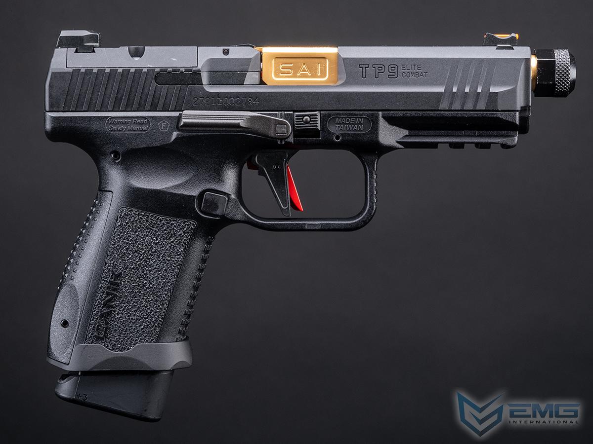 Canik x Salient Arms TP9 Elite Combat Airsoft Training Pistol Licensed by Cybergun / EMG (Color: Black & Gold / Carry Package)