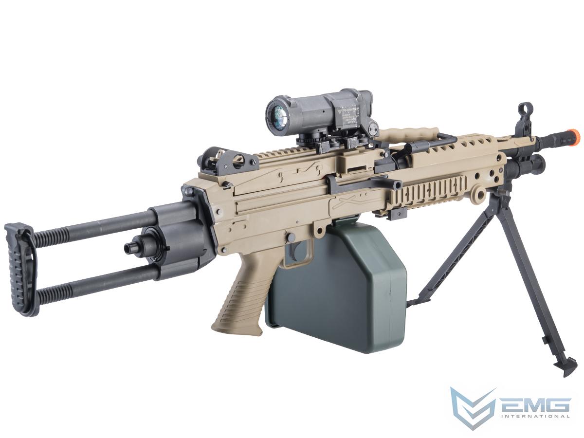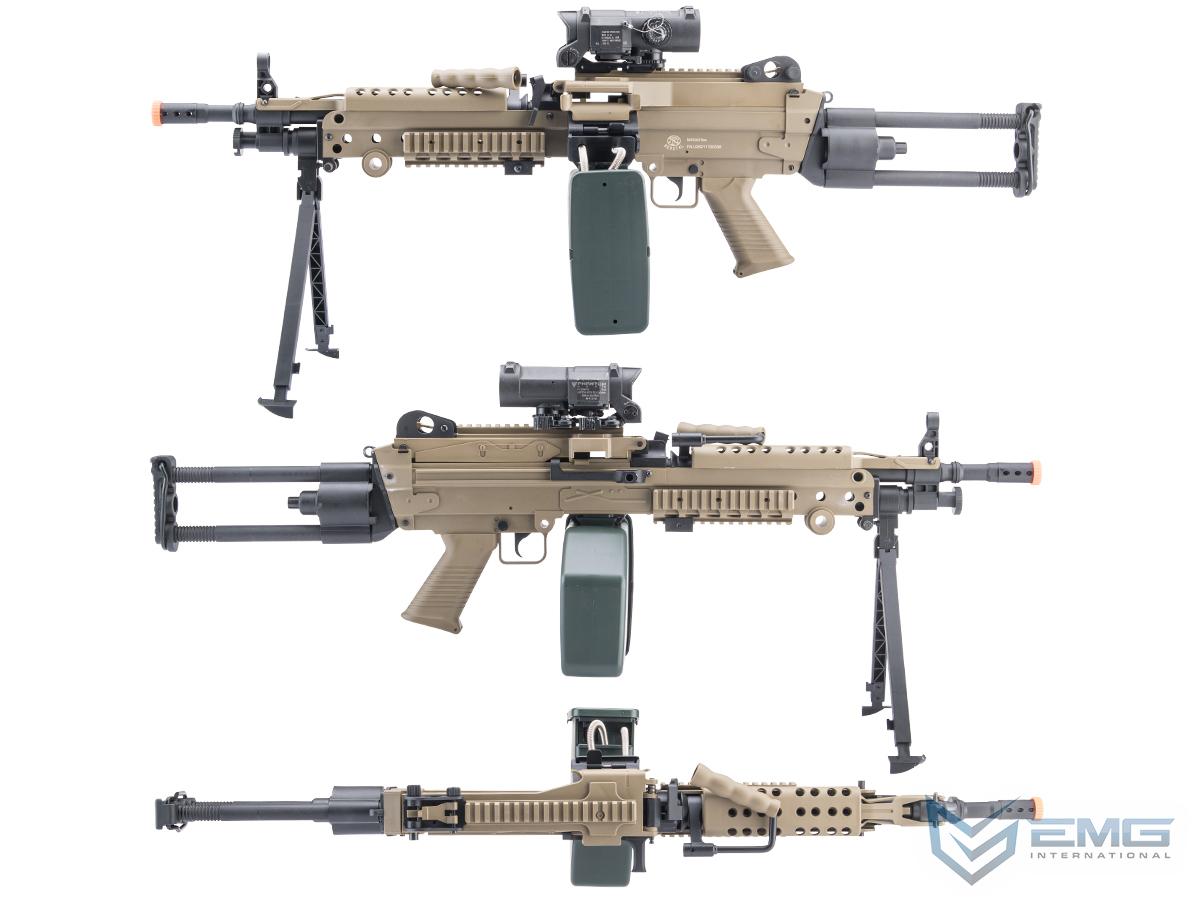 Cybergun FN Licensed M249 MINIMI "Featherweight" Airsoft Machine Gun (Model: Para / Tan / 400 FPS Electronic Trigger MOSFET / Add 2500rd Box Magazine)