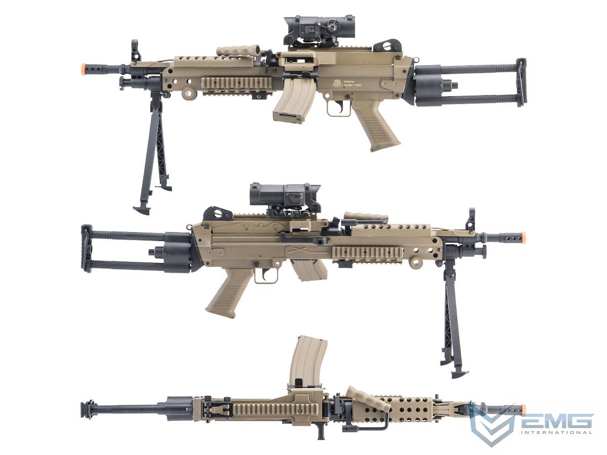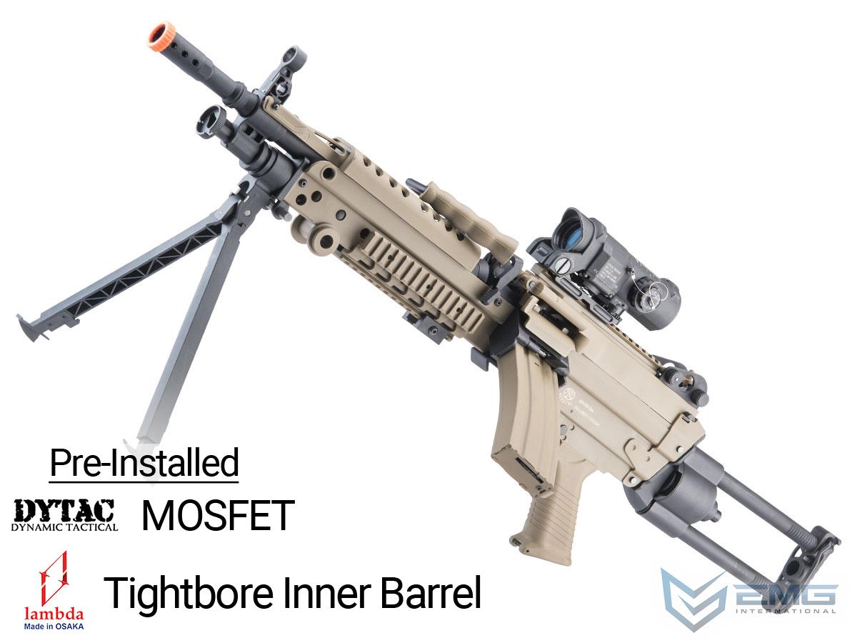 Cybergun FN Licensed M249 MINIMI "Featherweight" Airsoft Machine Gun (Model: Para / Tan / <350 FPS Electronic Trigger MOSFET / Performance Plus Package)