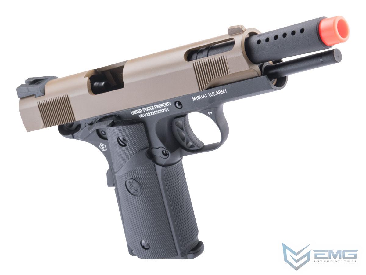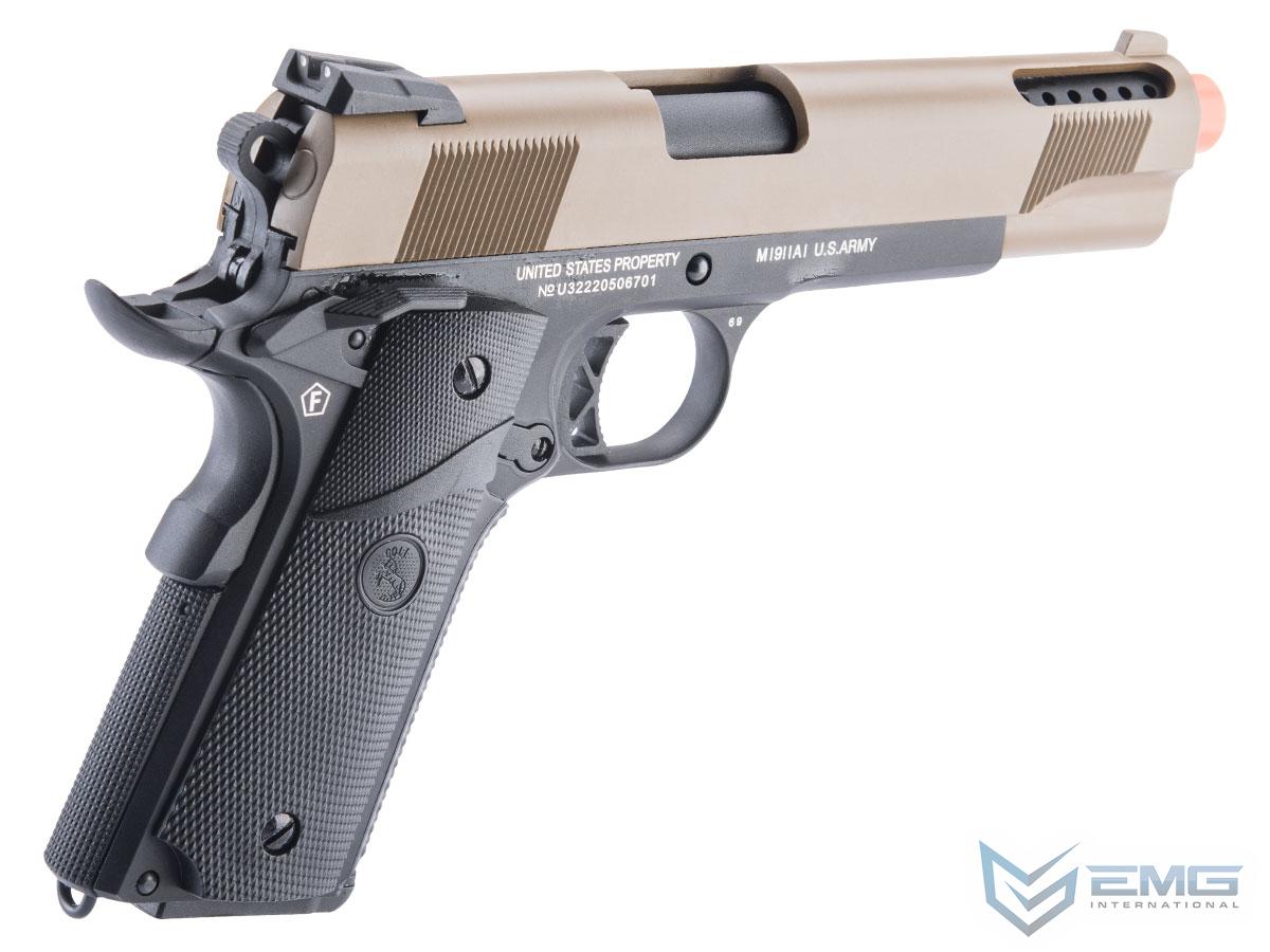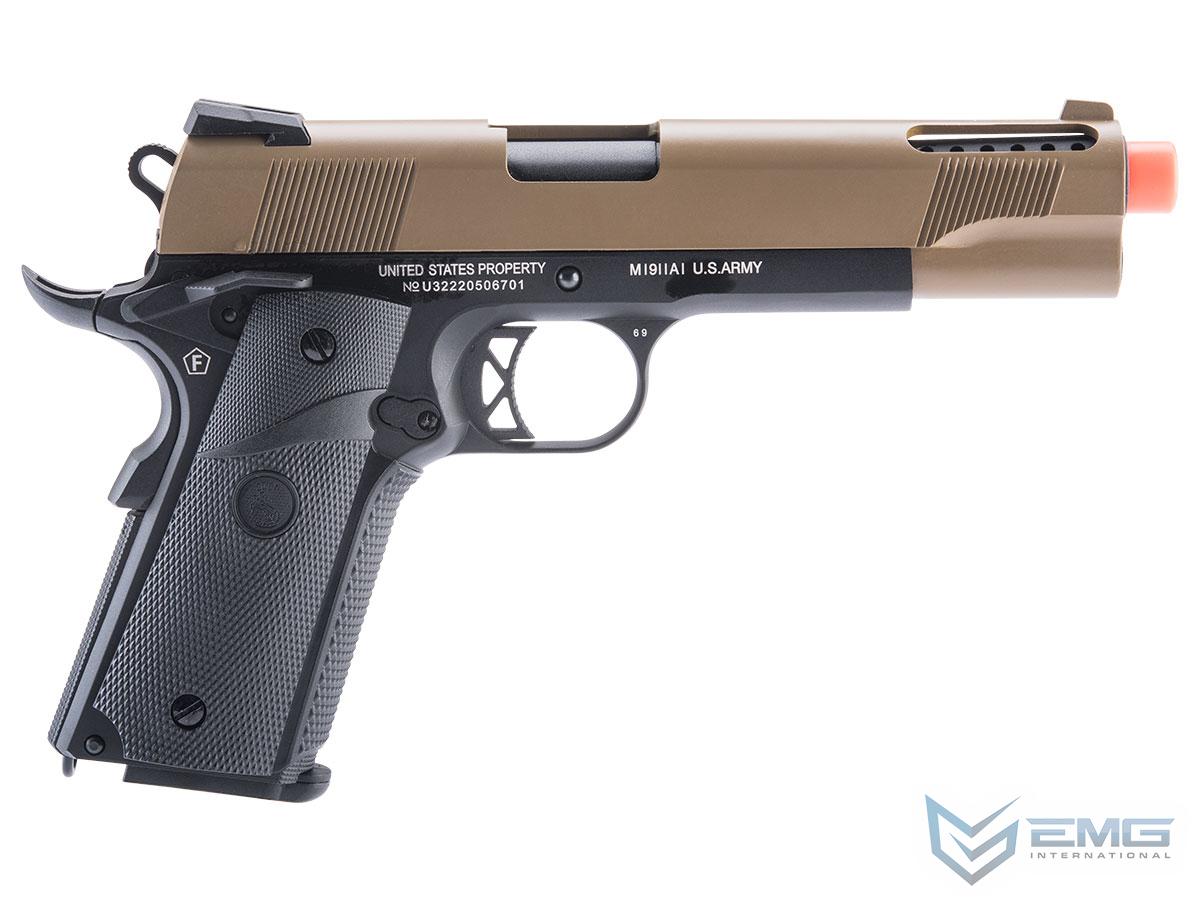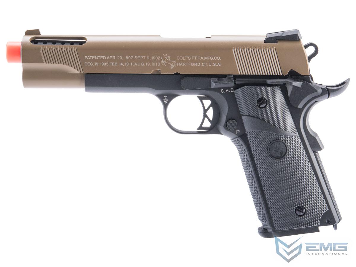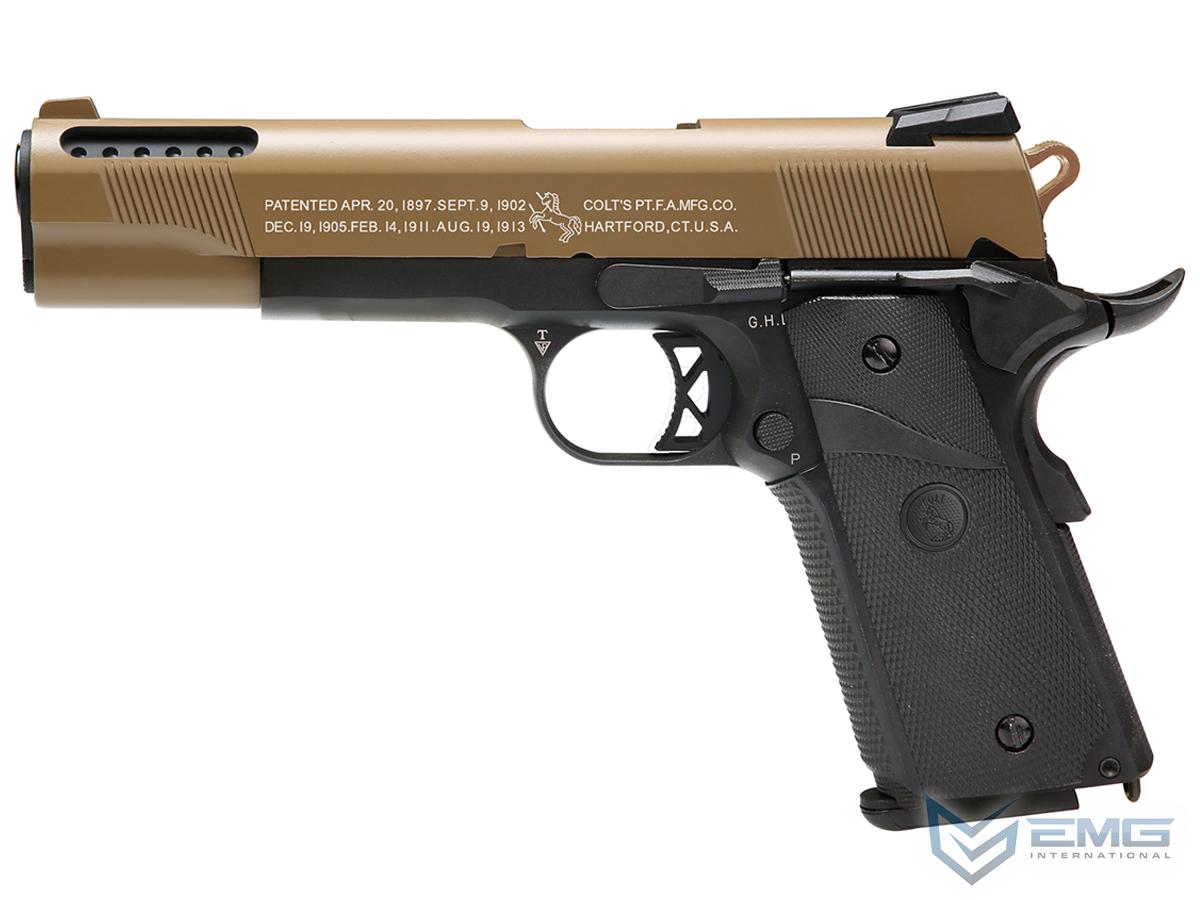 Cybergun Colt Licensed 1911 Airsoft Gas Blowback Pistol (Color: Two-Tone Tan - Black / SRV-12 / Gas / Essentials Pack)