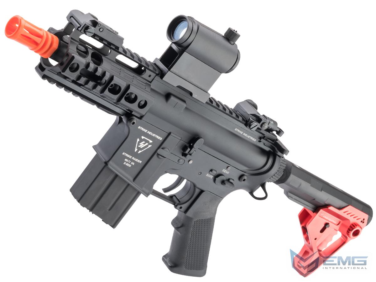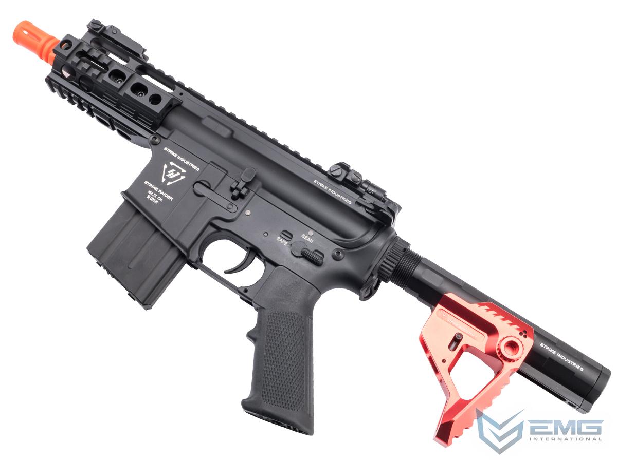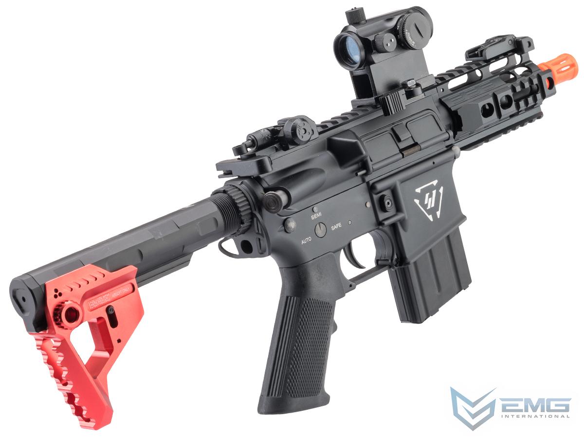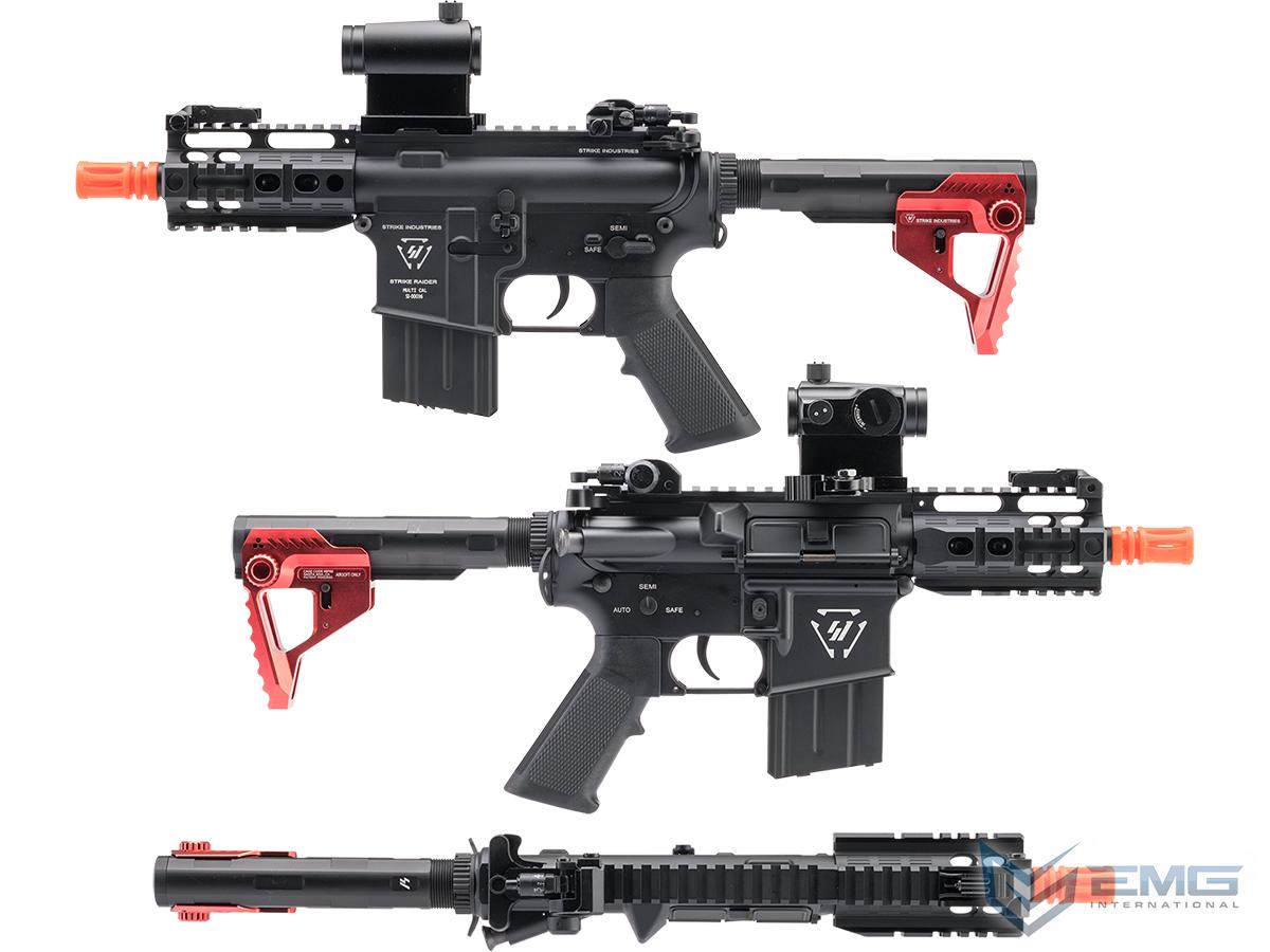 6mmProShop Strike Industries Licensed "Raider" M4 Airsoft AEG Rifle w/ CNC Strike Pit Stock (Color: Black / Red Stock)