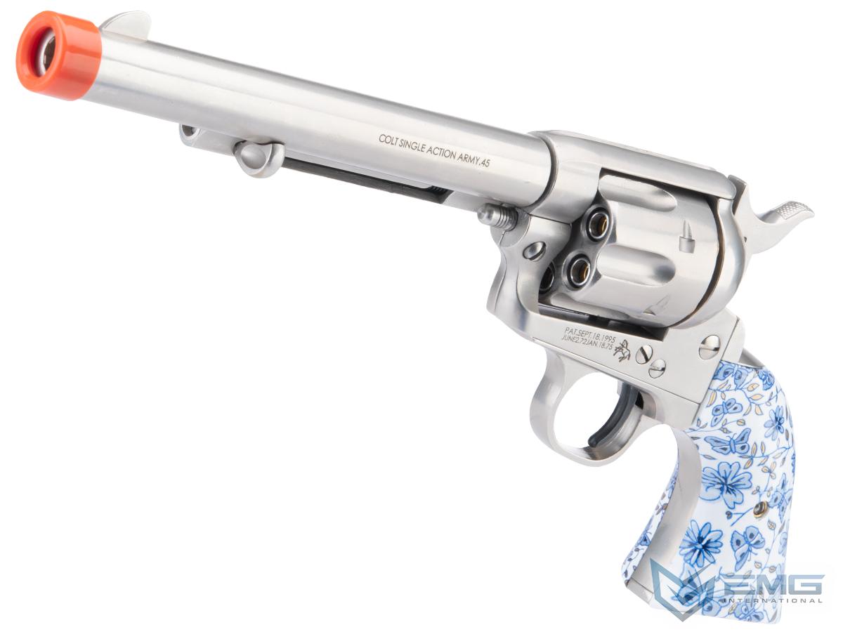 Cybergun Colt Licensed SAA .45 Peacemaker Gas Powered Airsoft Revolver by King Arms (Model: Cavalry Barrel / Blue-White Porcelain)