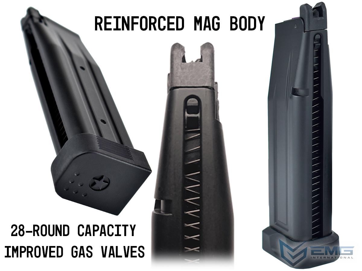 +1 rounds. Works w/ EMG double stack 2011 GBB magazines