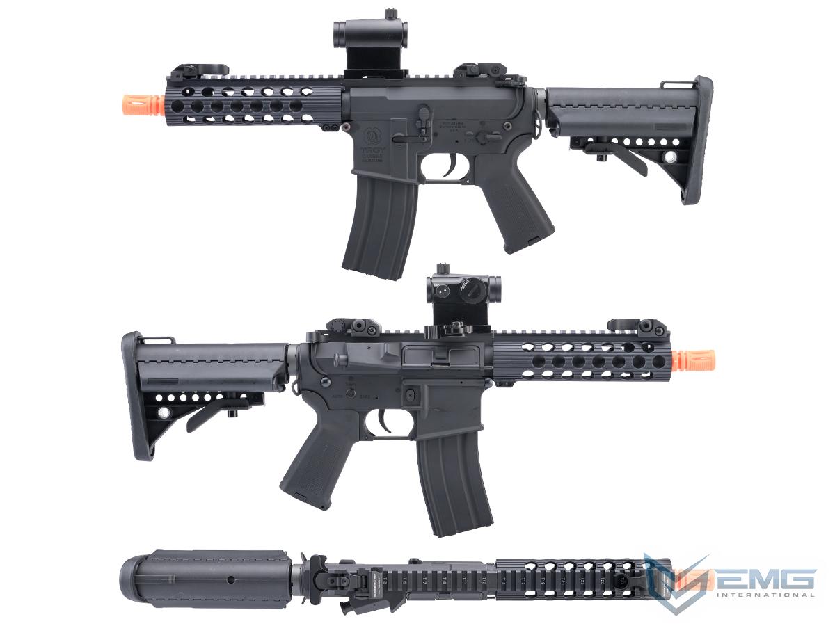 6mmProShop Troy Industries Licensed M4 Airsoft AEG Rifle w/ Alpha Battle Rail by E&C (Color: Black / 7.2" Rail / 350FPS)