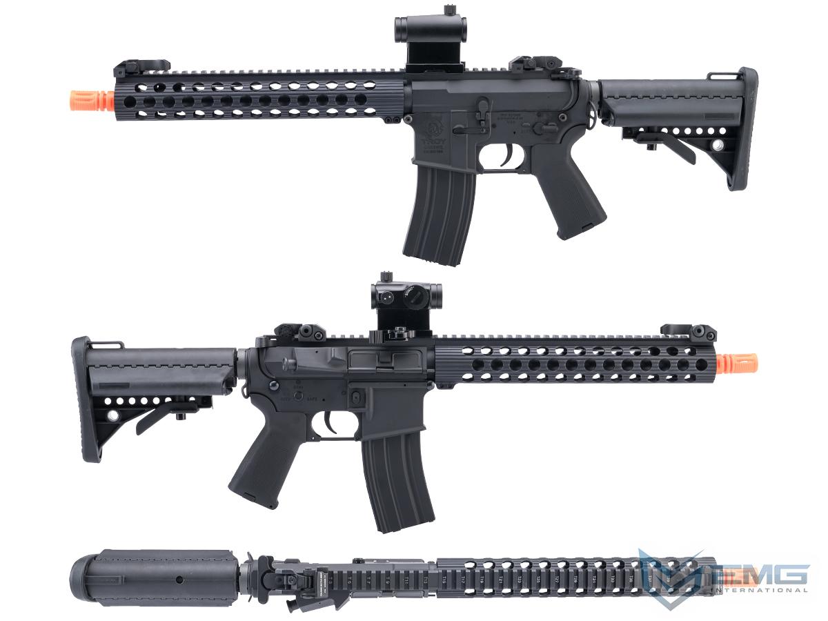 6mmProShop Troy Industries Licensed M4 Airsoft AEG Rifle w/ Alpha Battle Rail by E&C (Color: Black / 12" Rail / 400FPS)