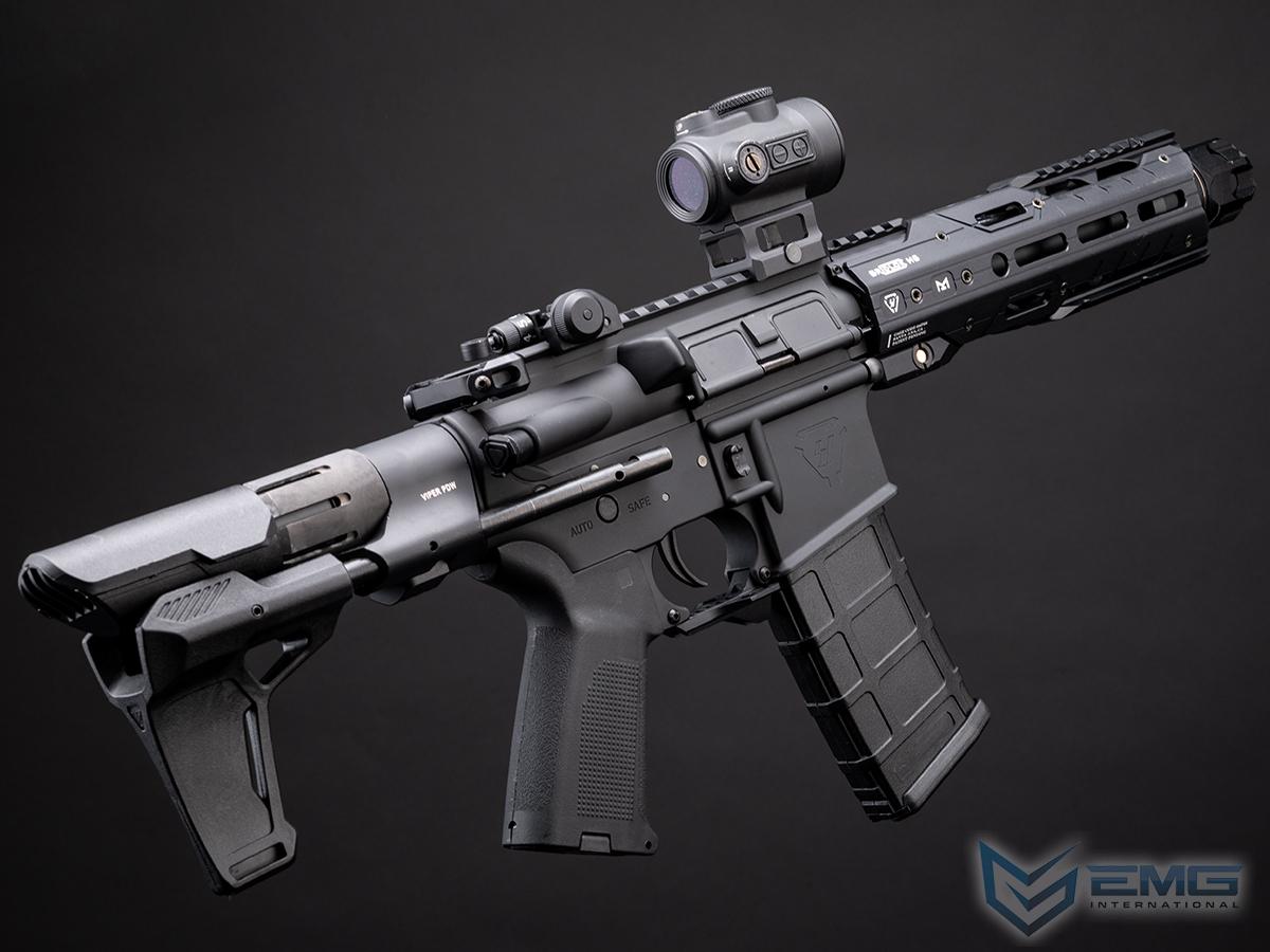 6mmProShop Strike Industries Licensed M4 Airsoft AEG Rifle w/ GRIDLOK® Handguard System by E&C (Color: Black PDW / 8.5" RIS / 350 FPS)