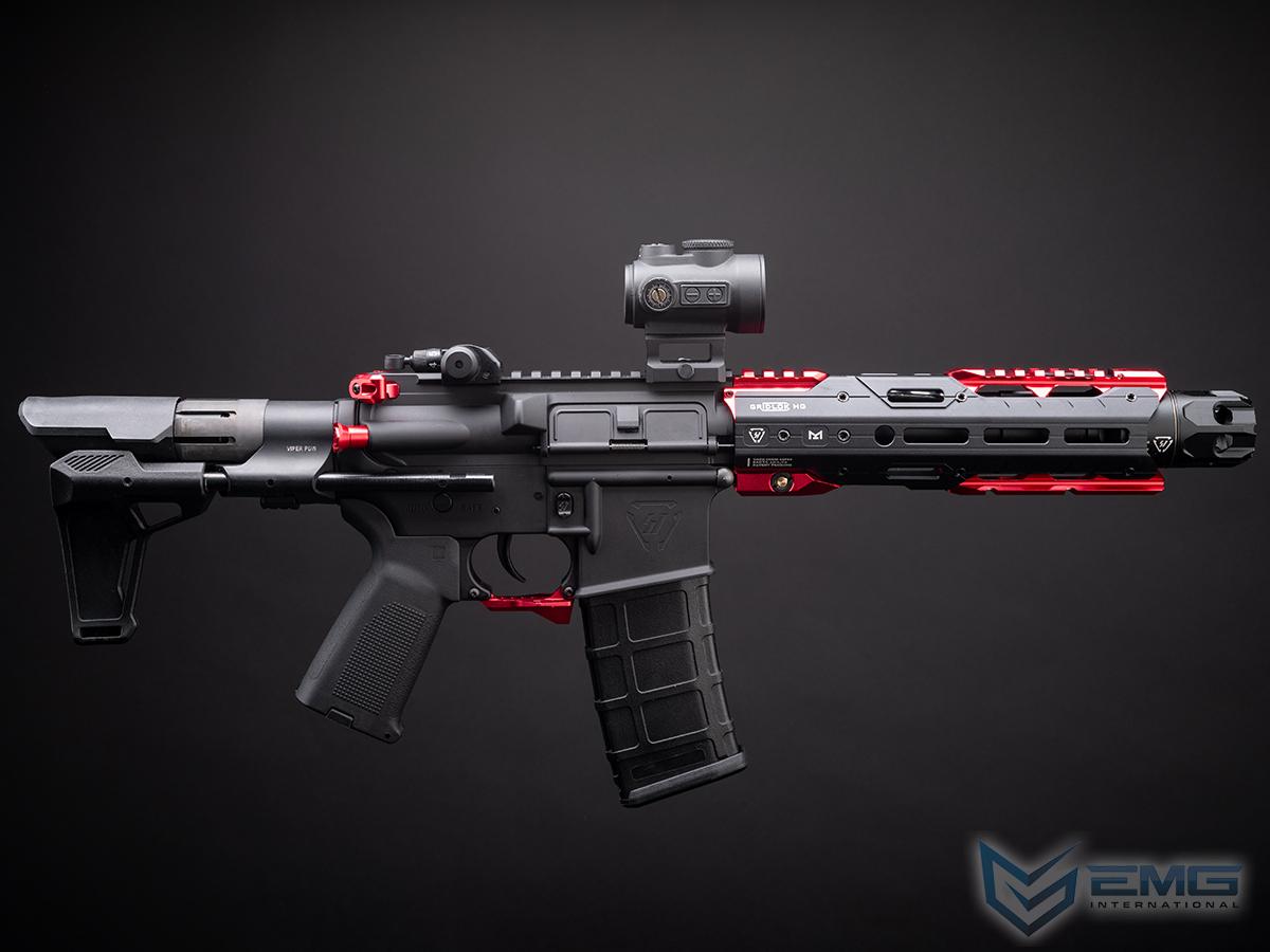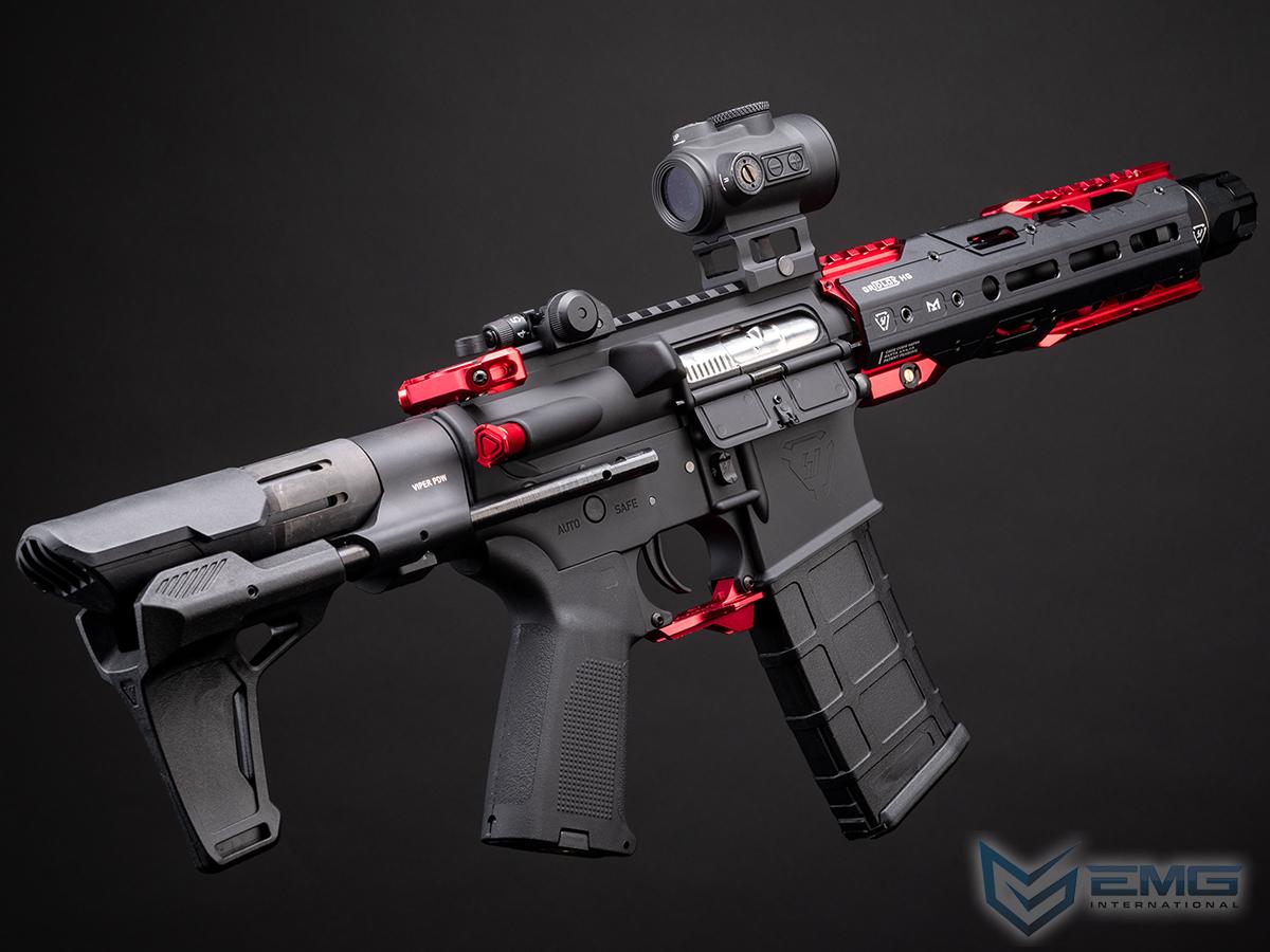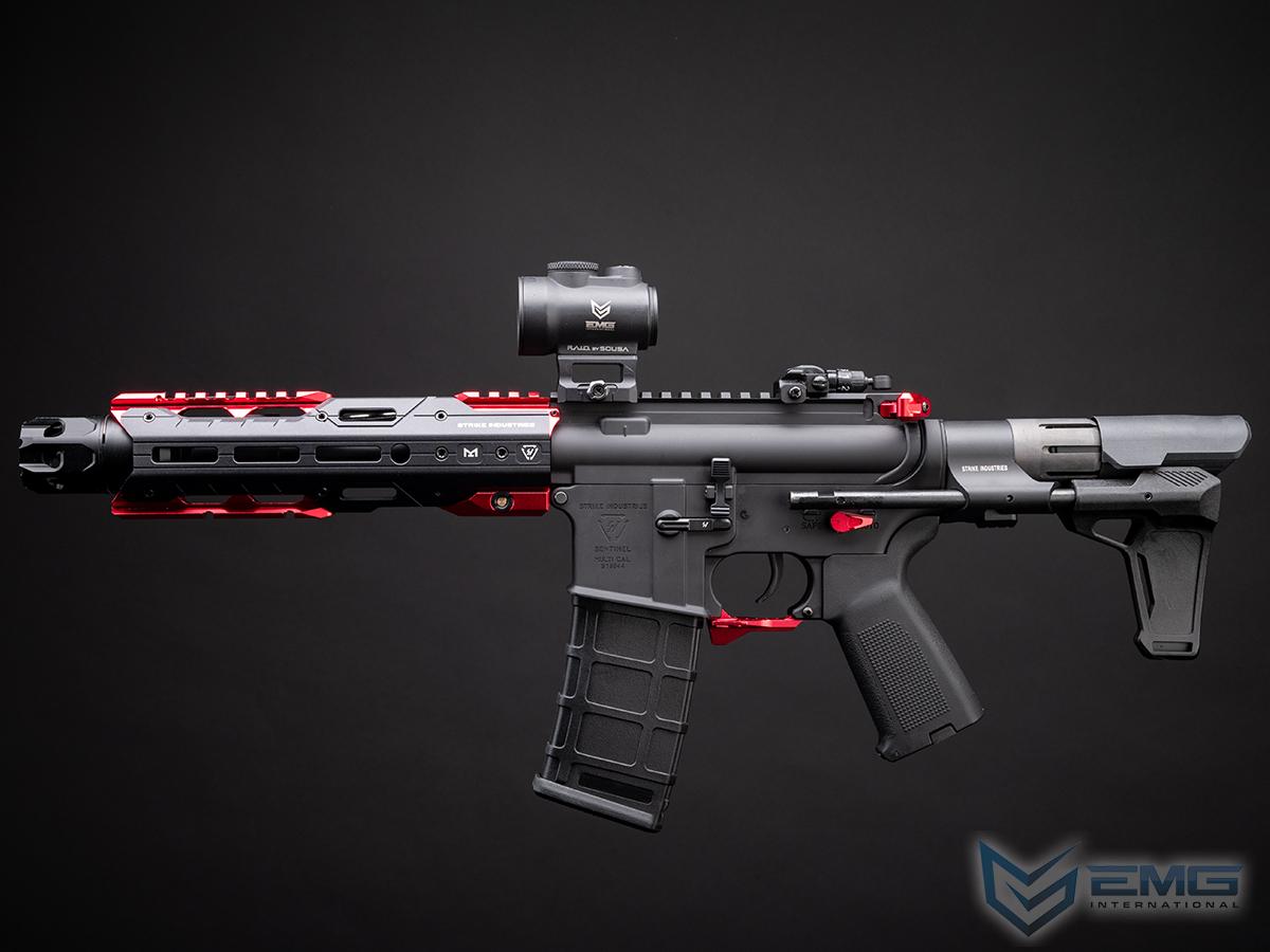 6mmProShop Strike Industries Licensed M4 Airsoft AEG Rifle w/ GRIDLOK® Handguard System by E&C (Color: Red PDW / 8.5" RIS / 350 FPS)