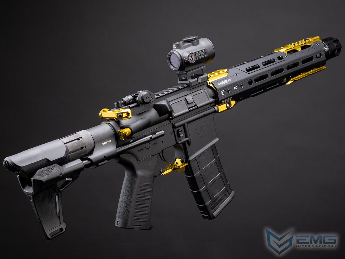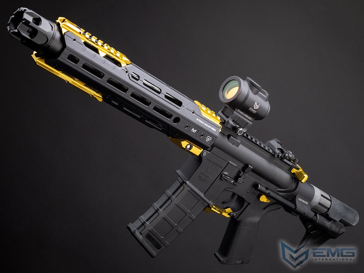 6mmProShop Strike Industries Licensed M4 Airsoft AEG Rifle w/ GRIDLOK® Handguard System by E&C (Color: Gold PDW / 11" RIS / 350 FPS)