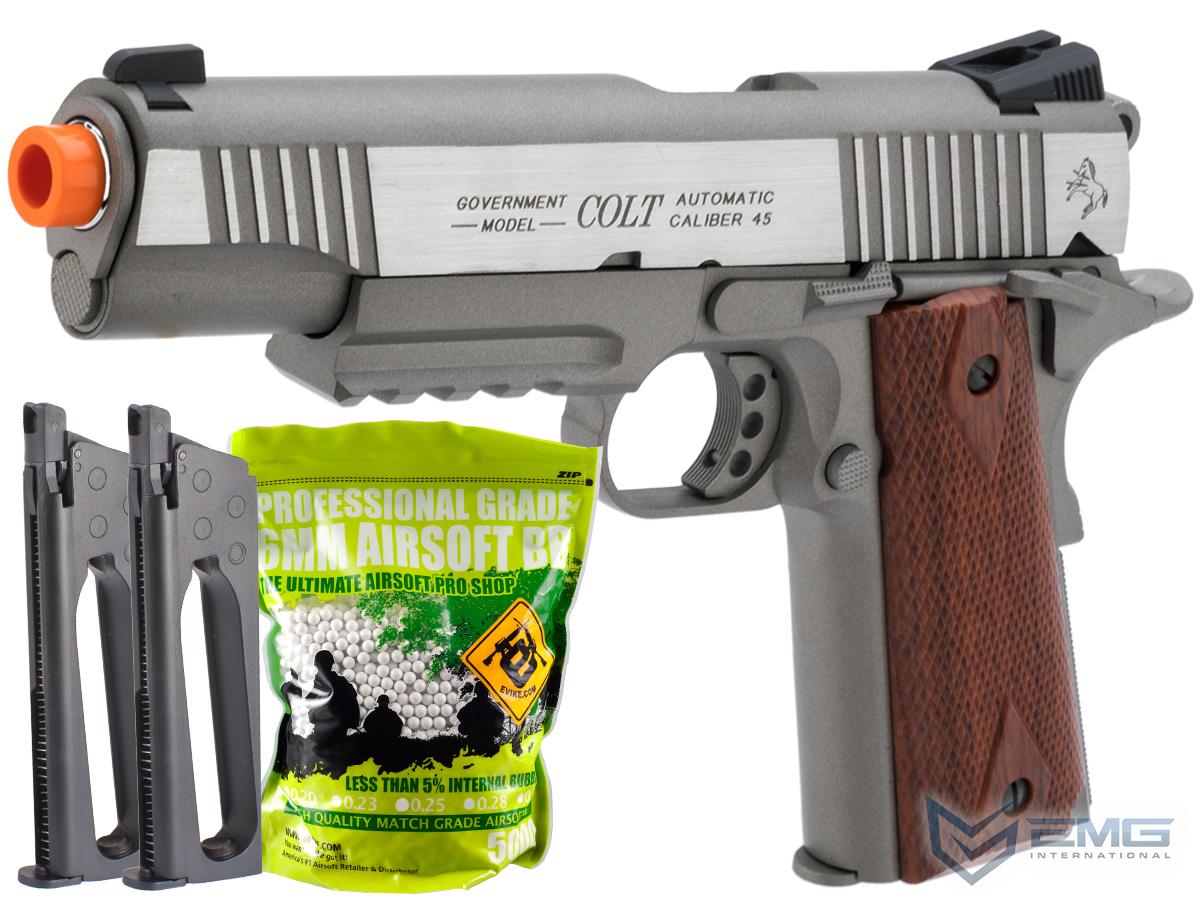 Cybergun Colt Licensed 1911 Tactical CO2-Powered Airsoft Gas Blowback Pistol by KWC (Model: Stainless Railed / Reload Package)