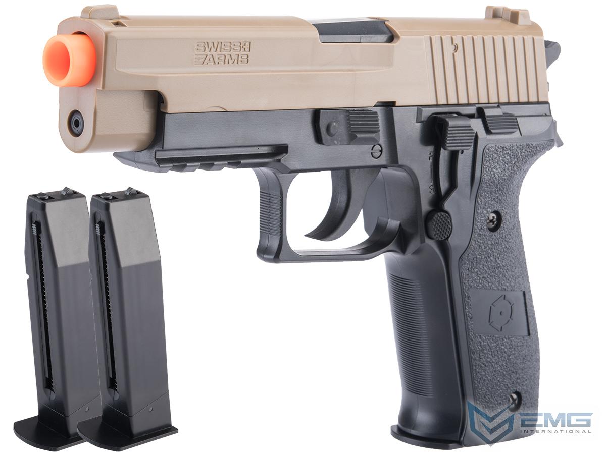 Swiss Arms Licensed 226 Spring Powered Airsoft Pistol (Color: Black and Tan / Add 2x Spare Magazines)