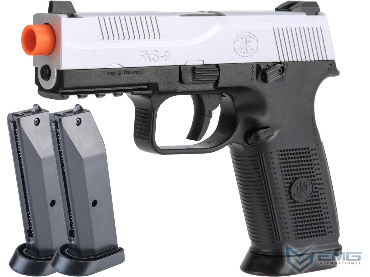 Cybergun FN FNS-9 Airsoft Spring Pistol (Color: Two-Tone / Add 2x Spare Magazines)