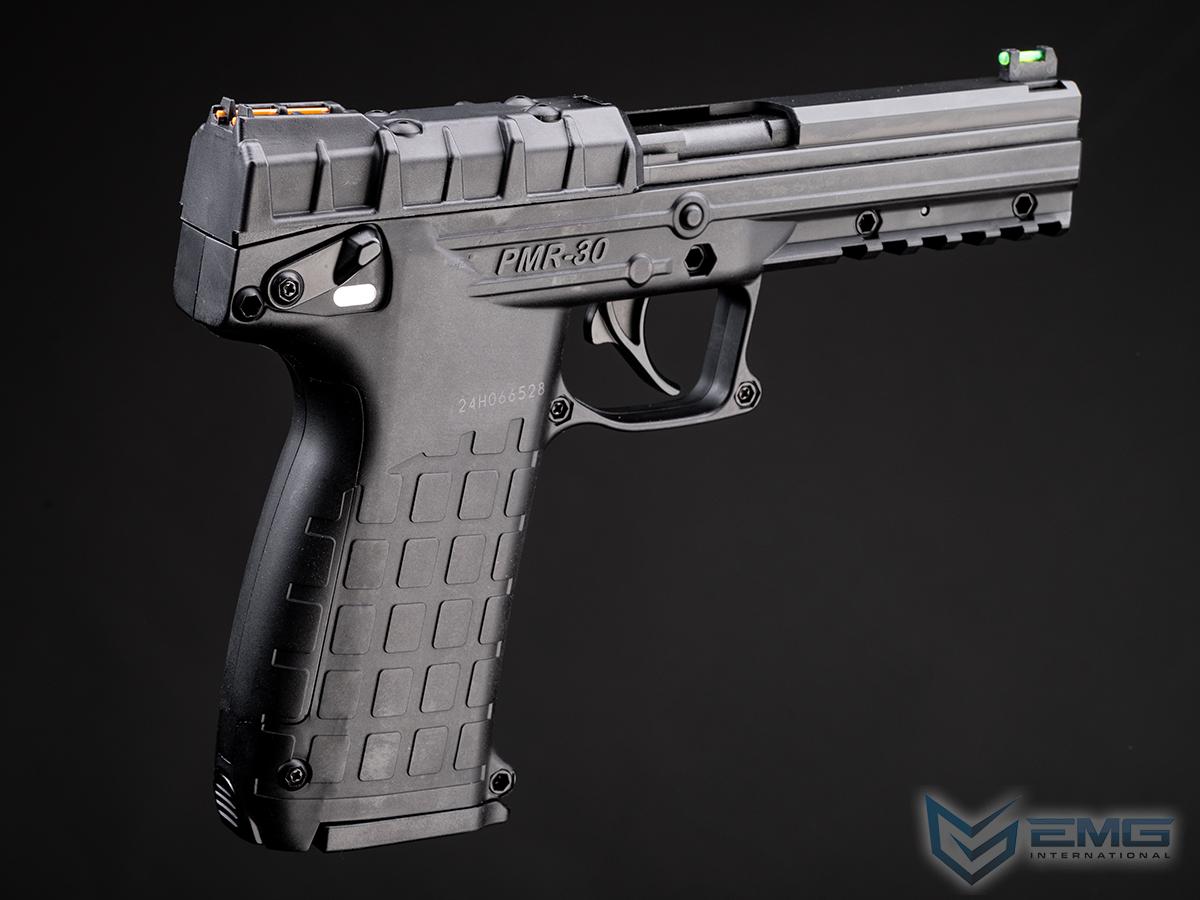 The PMR-30 is a light weight, full size pistol chambered for the flat-shooting .22 Magnum cartridge (.22WMR). The PMR-30 operates on a unique hybrid blowback/locked-breech system. This operation system allows for the use of a wide variety of ammunition as it seamlessly adjusts between locked breach and blowback operation, depending on the pressure of the cartridge. It uses a double stack magazine of a new design that holds 30 rounds and fits completely in the grip of the pistol. The trigger is a crisp single action with an over-travel stop. The manual safety is a thumb activated ambidextrous safety lever (up for SAFE, down for FIRE). The slide locks back after the last shot and a manual slide lock lever is also provided. The light, crisp trigger pull and fiber optic sights make the PMR-30 ideal for target shooting and hunting small game.