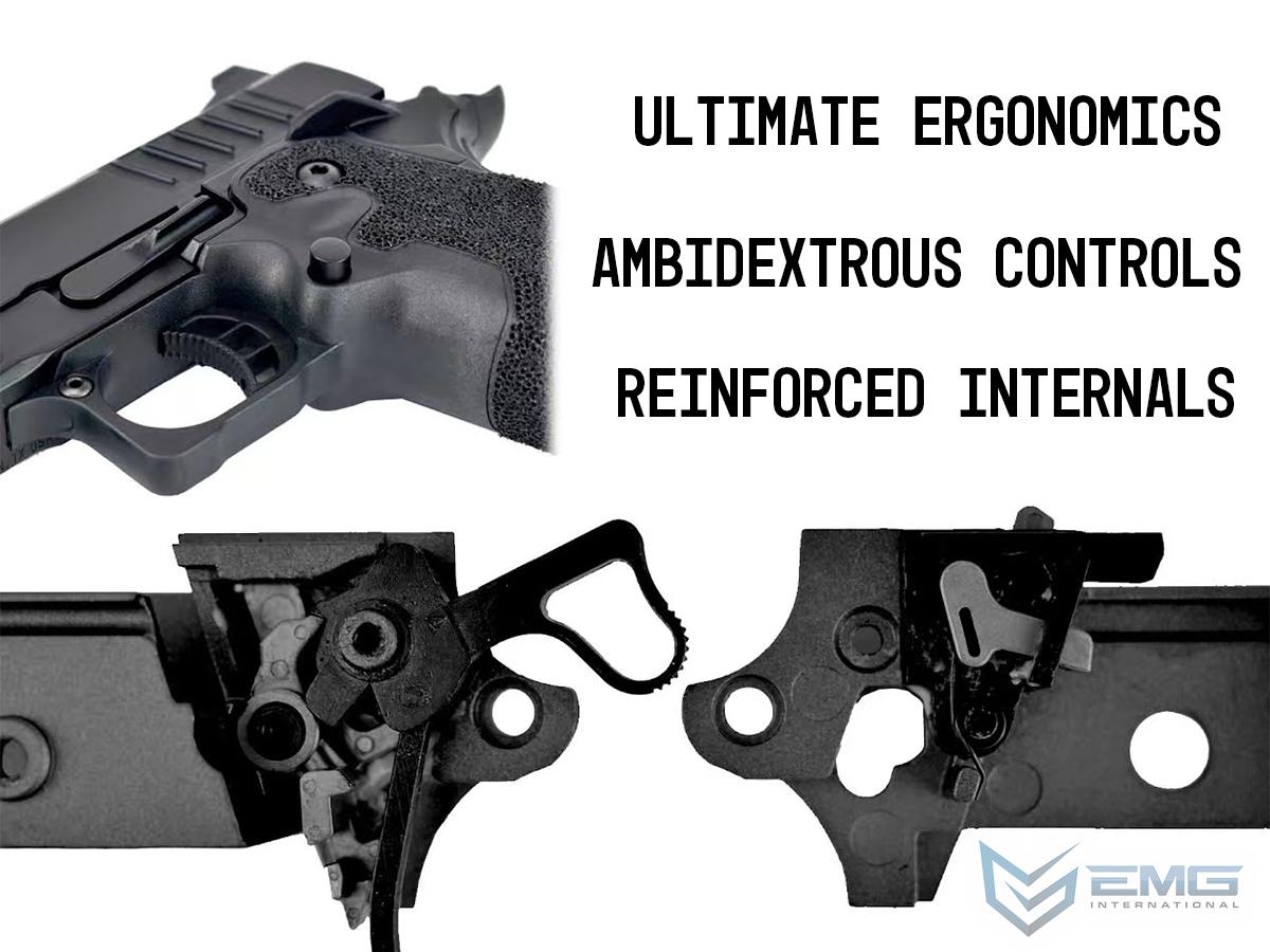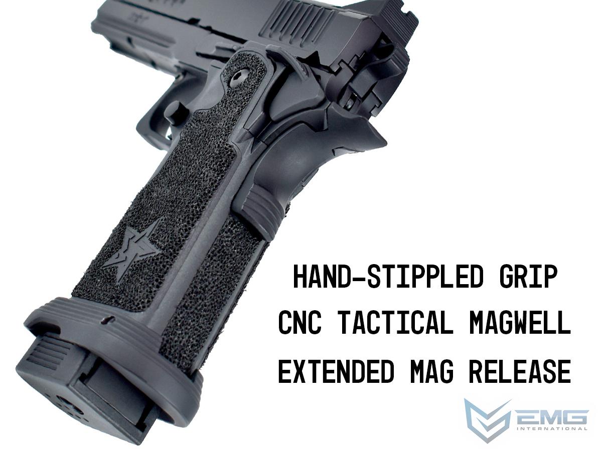 Magazine: 27+1 rounds. Works w/ EMG double stack 2011 GBB magazines
