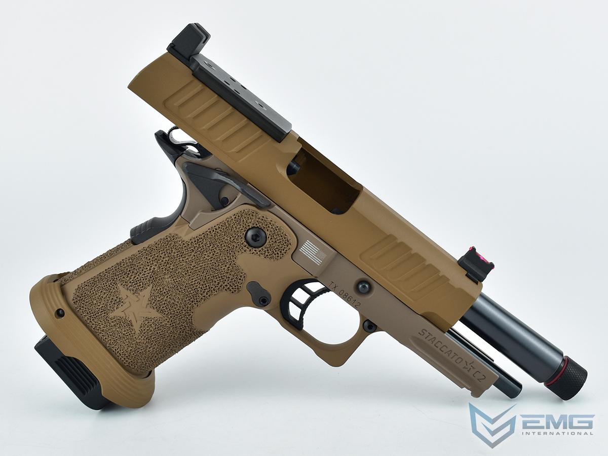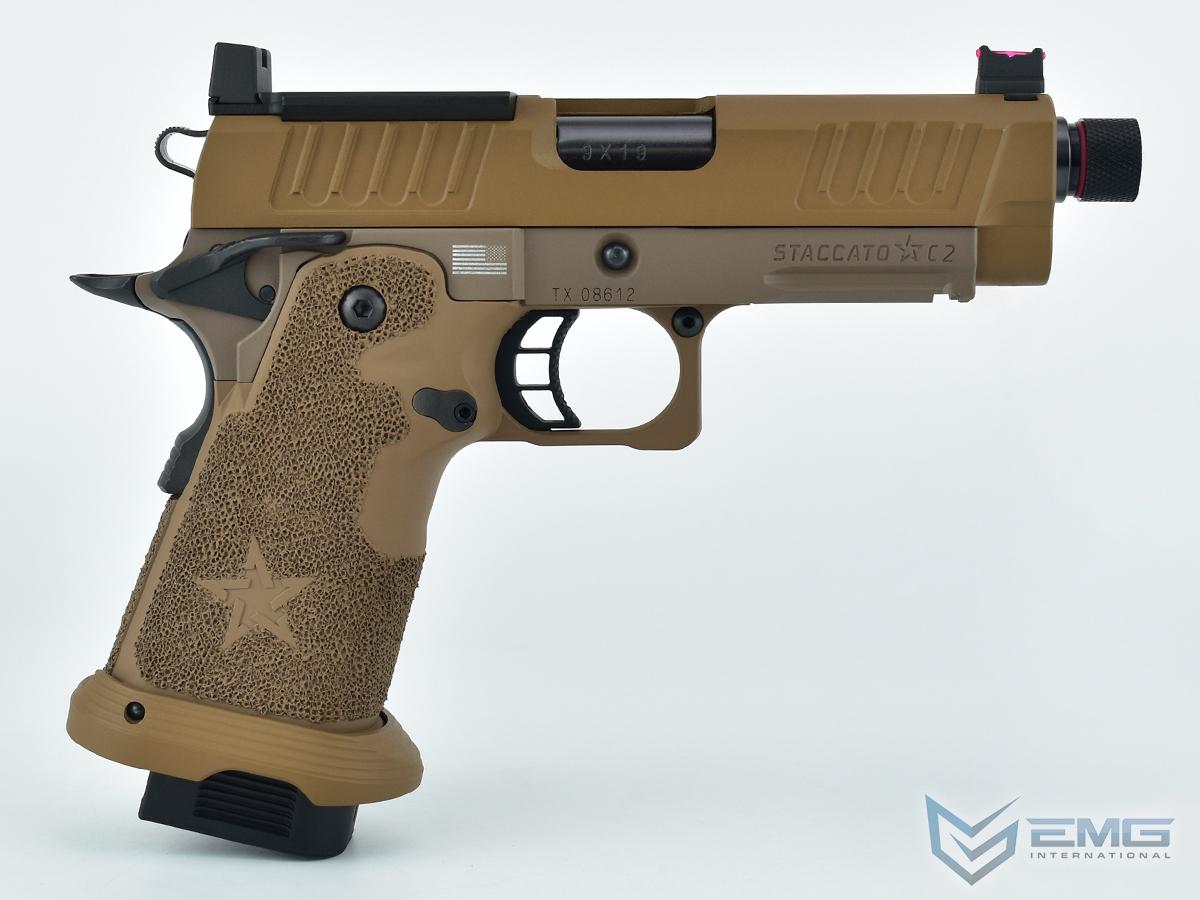 6mmProShop Staccato Licensed C2 Compact 2011 Gas Blowback T8 Airsoft Pistol (Color: Flat Dark Earth / Green Gas / Reload Package)