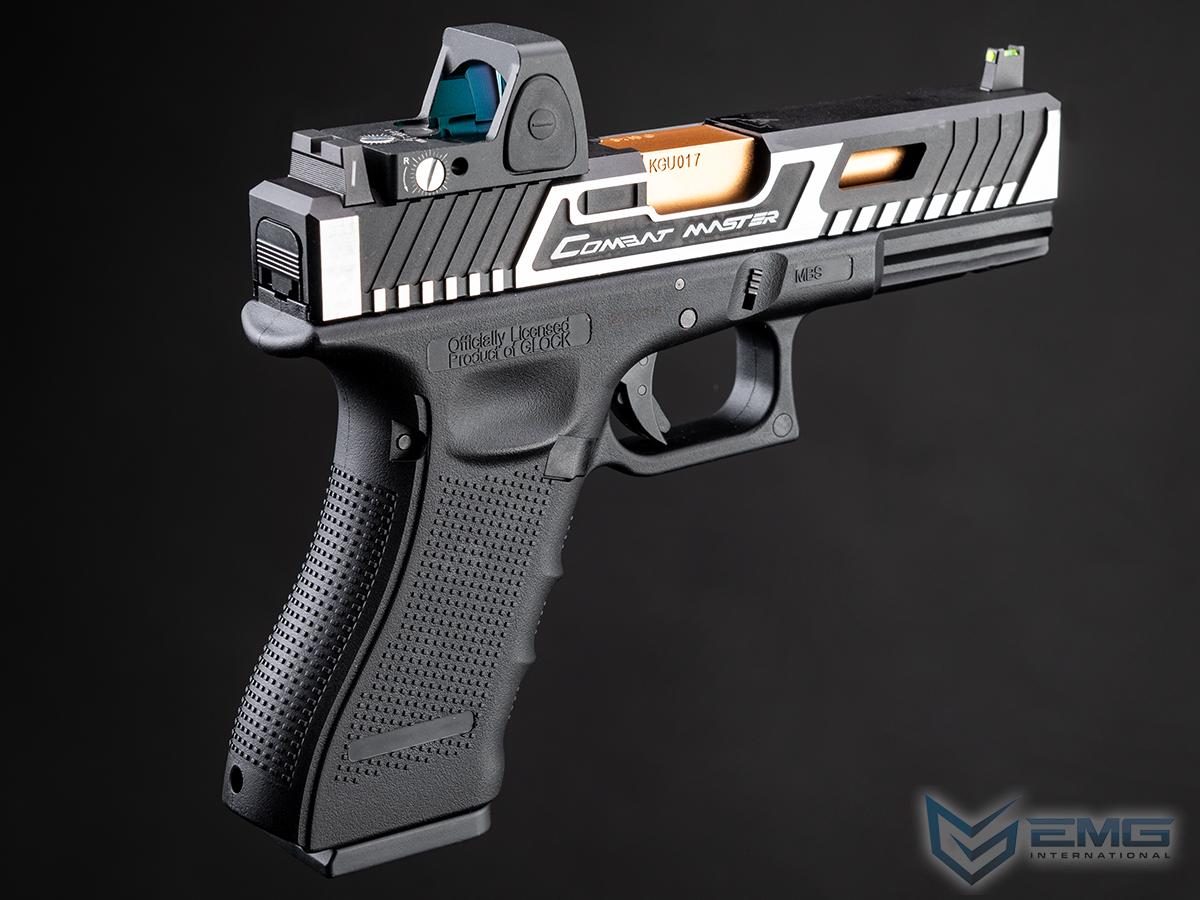 Evike Custom Licensed GLOCK 17 Gen 4 CO2 Gas Blowback Airsoft Pistol by KWC w/ EMG TTI CNC Combat Master Slide (Color: Two Tone / Competition Package)