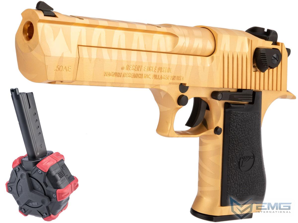 WE-Tech Desert Eagle .50 AE Gas Blowback Airsoft Pistol by Cybergun (Color: Gold Tigerstripe / Green Gas / Add Drum Magazine)