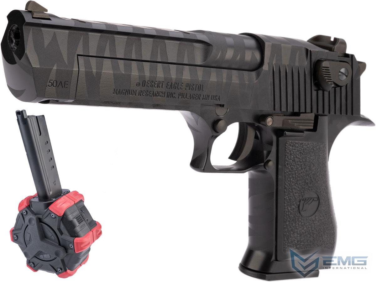 WE-Tech Desert Eagle .50 AE Gas Blowback Airsoft Pistol by Cybergun (Color: Black Tigerstripe / Green Gas / Add Drum Magazine)