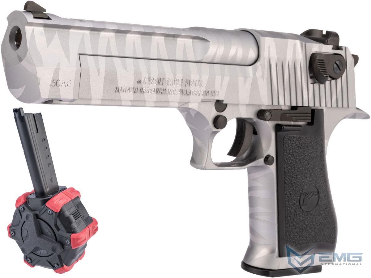 WE-Tech Desert Eagle .50 AE Gas Blowback Airsoft Pistol by Cybergun (Color: Silver Tigerstripe / Green Gas / Add Drum Magazine)