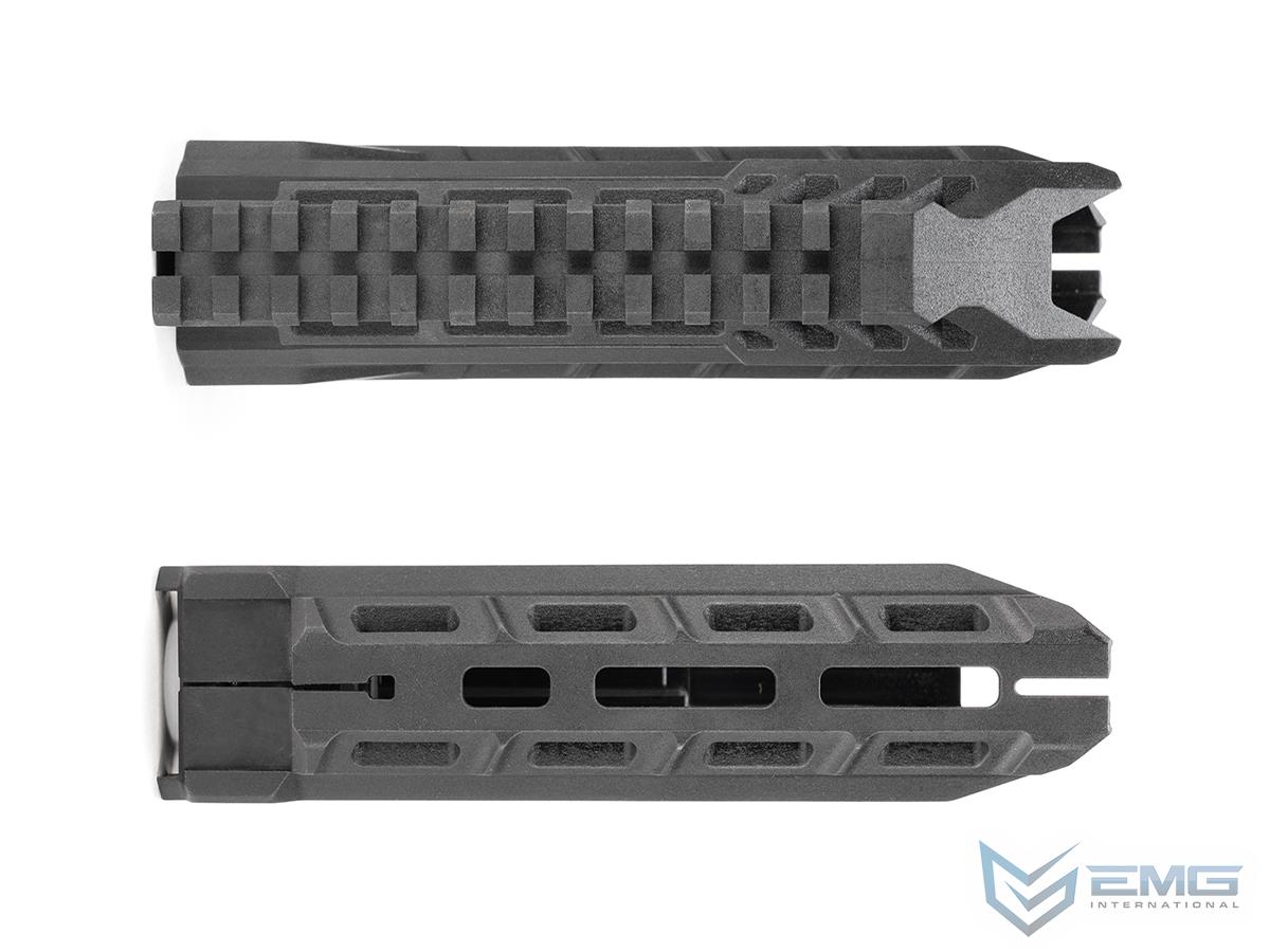 Our goal with this handguard was to make an even more affordable version of the preexisting aluminum model. That gave us the opportunity to make additional improvements for the end user to enjoy. Such as the extended top picatinny rail which covers the full length of the handguard now. While retaining key MLOK slots for attachments at the 3,6, and 9 position we've also added an additional shelf where you can rest your offhand's thumb for a really great grip on the front end of the Scorpion.
