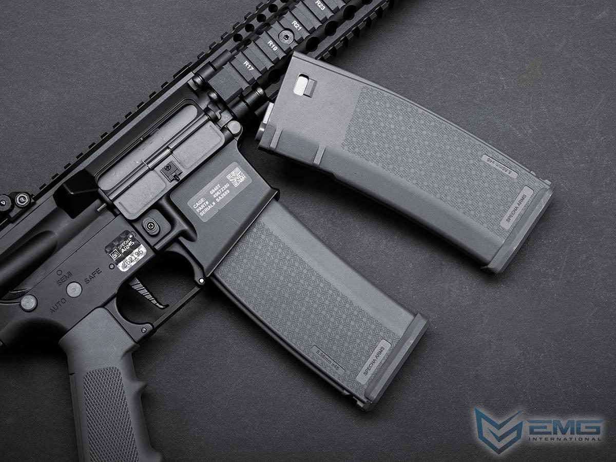 This magazine is known for its compact, durable construction and smooth design. Notably, it features the distinctive texture with Specna Arms logos. Made from durable polymer, its unique construction ensures compatibility with most replicas on the market and is ideally suited for various tactical setups. The S-MAG⢠enables seamless feeding of BBs even at high rates of fire.