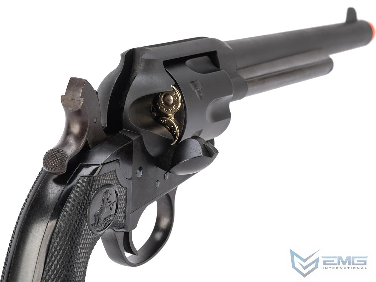 Constructed with a beautiful steel finish, Colt Single Action Army trademarks, and realistic weight, this revolver is a beautiful and unique piece for those who are looking to reenact moments in front of a fake saloon of the wild west or display as a collector's piece. Realistic functionality helps to add to the authenticity of this revolver, with a single-action trigger requiring the hammer to be cocked before the trigger can be pulled. Your gas and BBs for the revolver are stored in the Cylinder, to eliminate the need for any additional CO2 cartridges or tools to be carried and potentially lose or accidentally dropping any shells around.