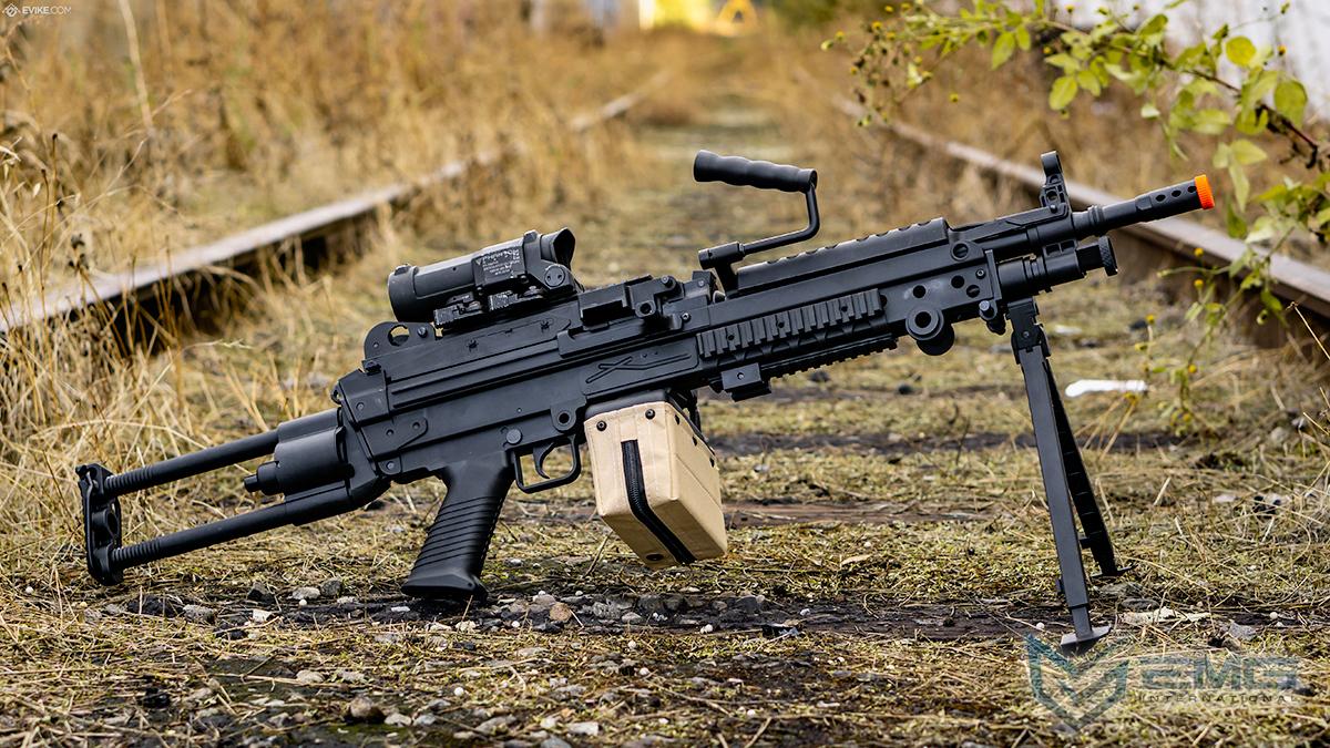 Cybergun FN Licensed M249 MINIMI "Featherweight" Airsoft Machine Gun (Model: Para / 400 FPS / Add 1500rd Tan Sack Magazine)