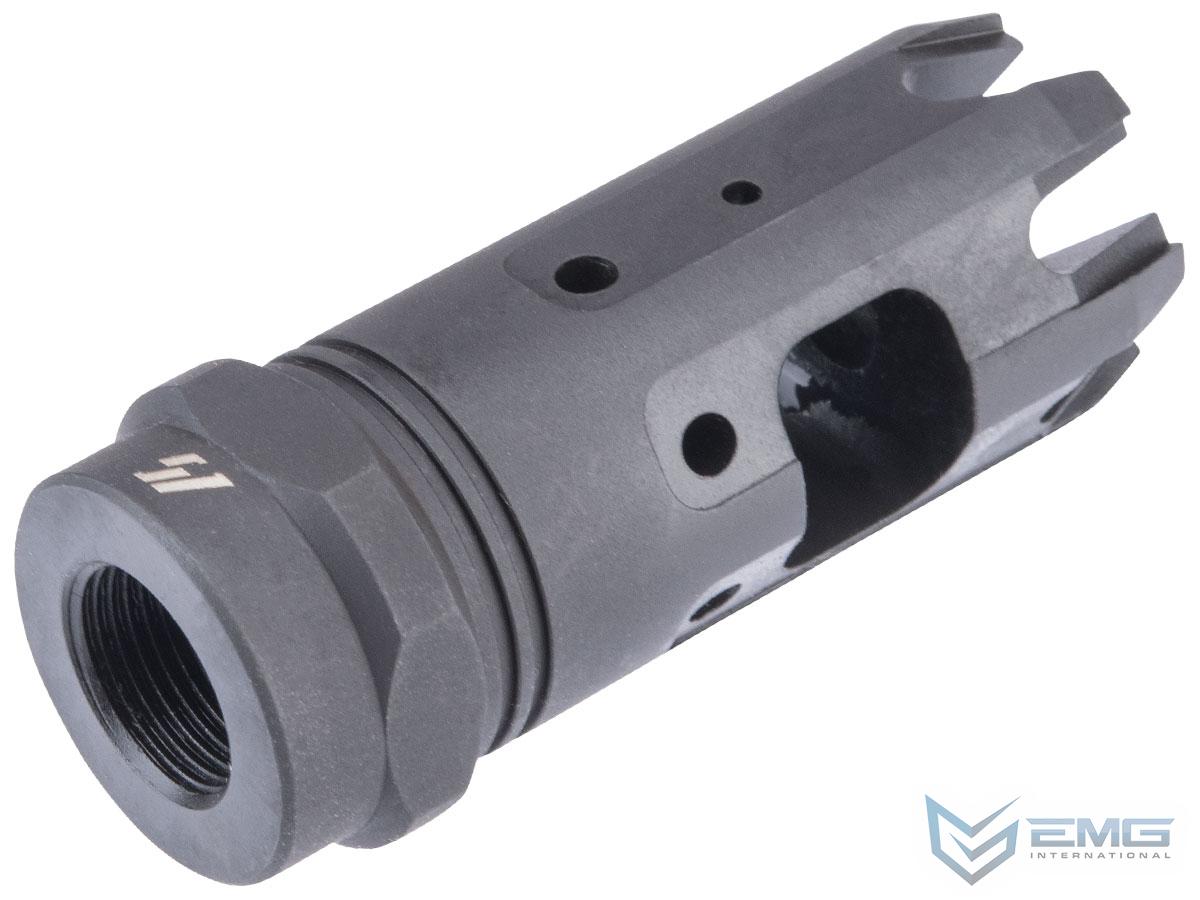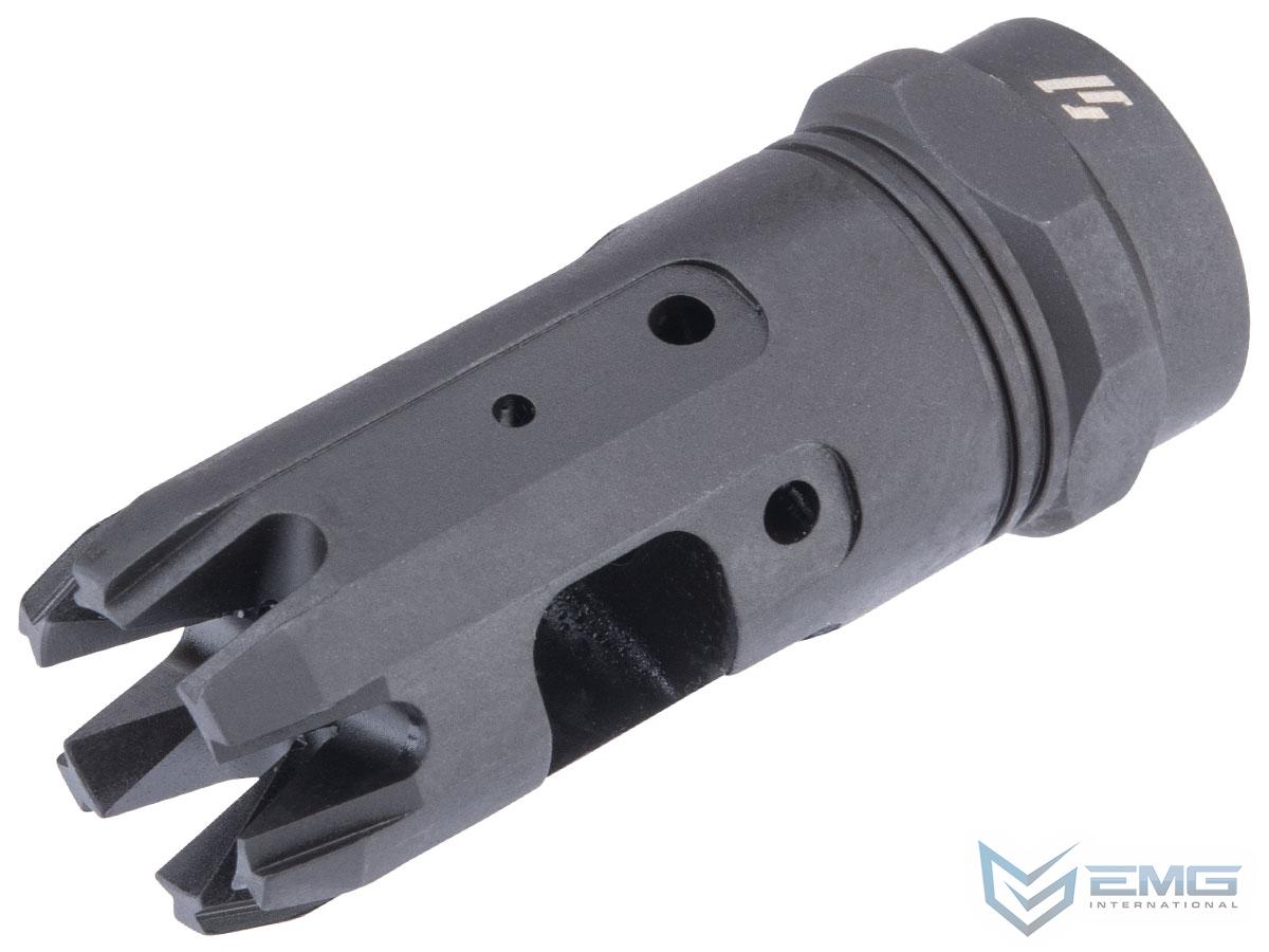 The Strike Industries Mini King Comp .223/5.56 brings the proven performance of the full-size King Comp in a more compact, lighter package designed for the .223/ 5.56 caliber. The Mini King Comp retains the full range of features of the King Comp but in a single chamber format. The large single baffle captures the vented gasses, producing a net force forward of the shooter that helps mitigate recoil. The ports work to stabilize the muzzle end for faster follow-up shots while dampening felt recoil on the shooter to maintain a pleasant overall shooting experience. The end of the Mini KING comp features the âcrownâ of standoff tines that gives the compensator its name. While .223/5.56 carbines are known for low recoil and ease of weapon manipulation, you can still find an edge in performance with the Strike Industries Mini King Comp.