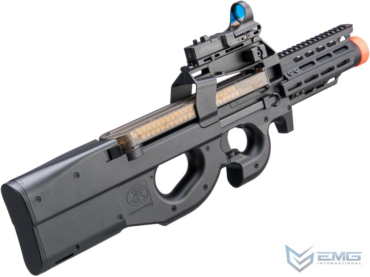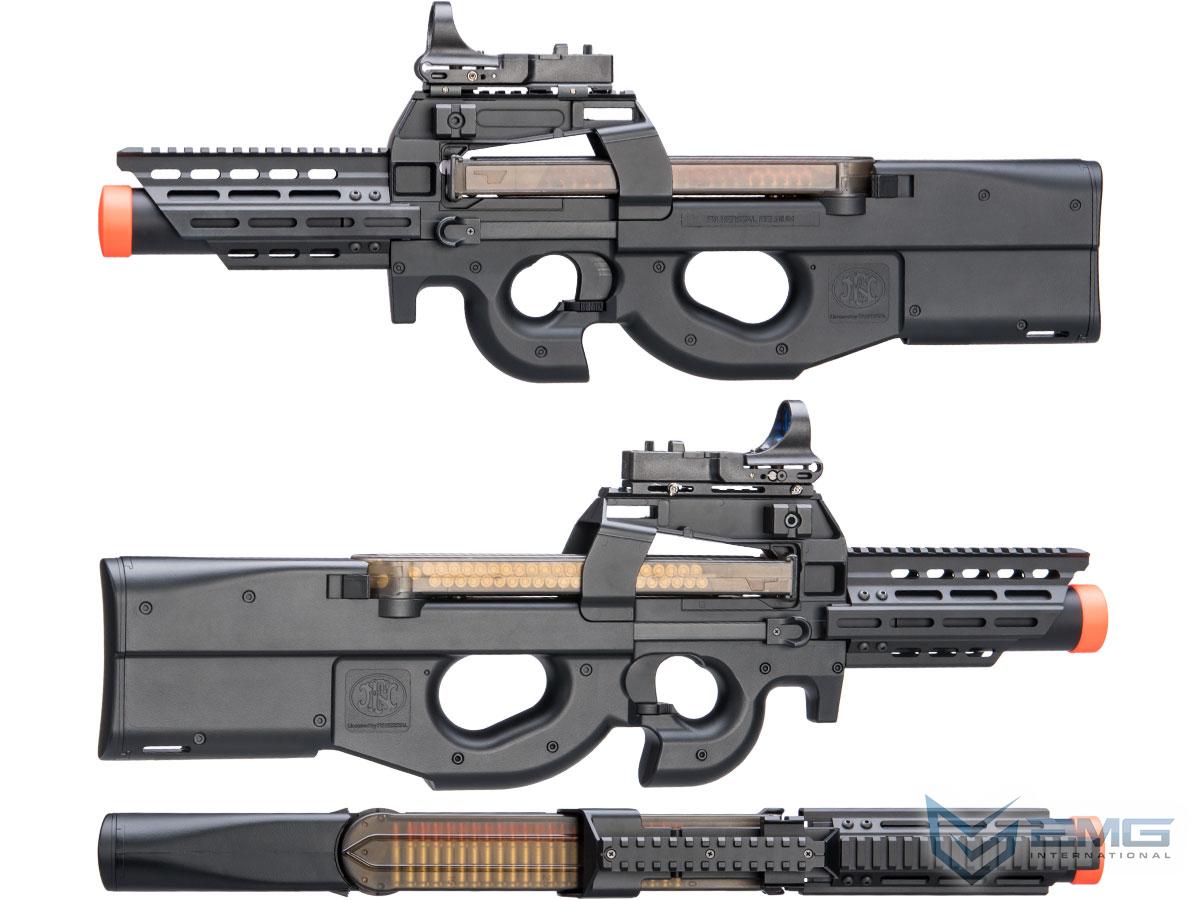 The FN® Licensed Airsoft P90 accurately replicates the great handling and ergonomics of the real P90 with its fully ambidextrous control layout and comfortable grip. Just like the actual P90, the FN® Licensed Airsoft replica consists of a durable reinforced polymer frame with metal barrel and upper assembly. Despite its small size, the P90s bullpup design allows for a considerably longer barrel than most sub-machine gun class weapons for improved range and accuracy. Fast, lightweight, and compact, the P90 is one of the most effective weapons for CQB and room clearing.