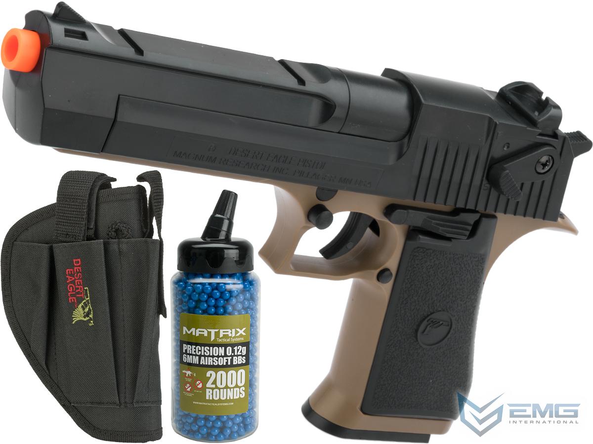Package Includes: Desert Eagle Pistol, 1x black magazine, 2000rds .12g BBs, Holster