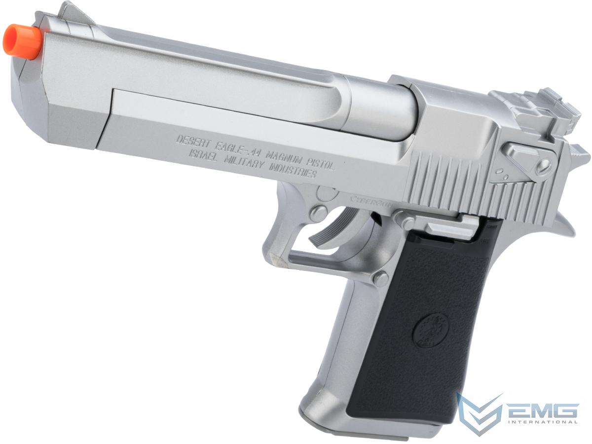 The Desert Eagle Magnum is a faithful replica of the world famous Desert Eagle large caliber hand gun. This Airsoft pistol features detachable magazine, spring loaded power, on frame safety and serrated slide.