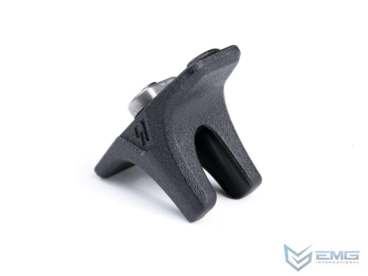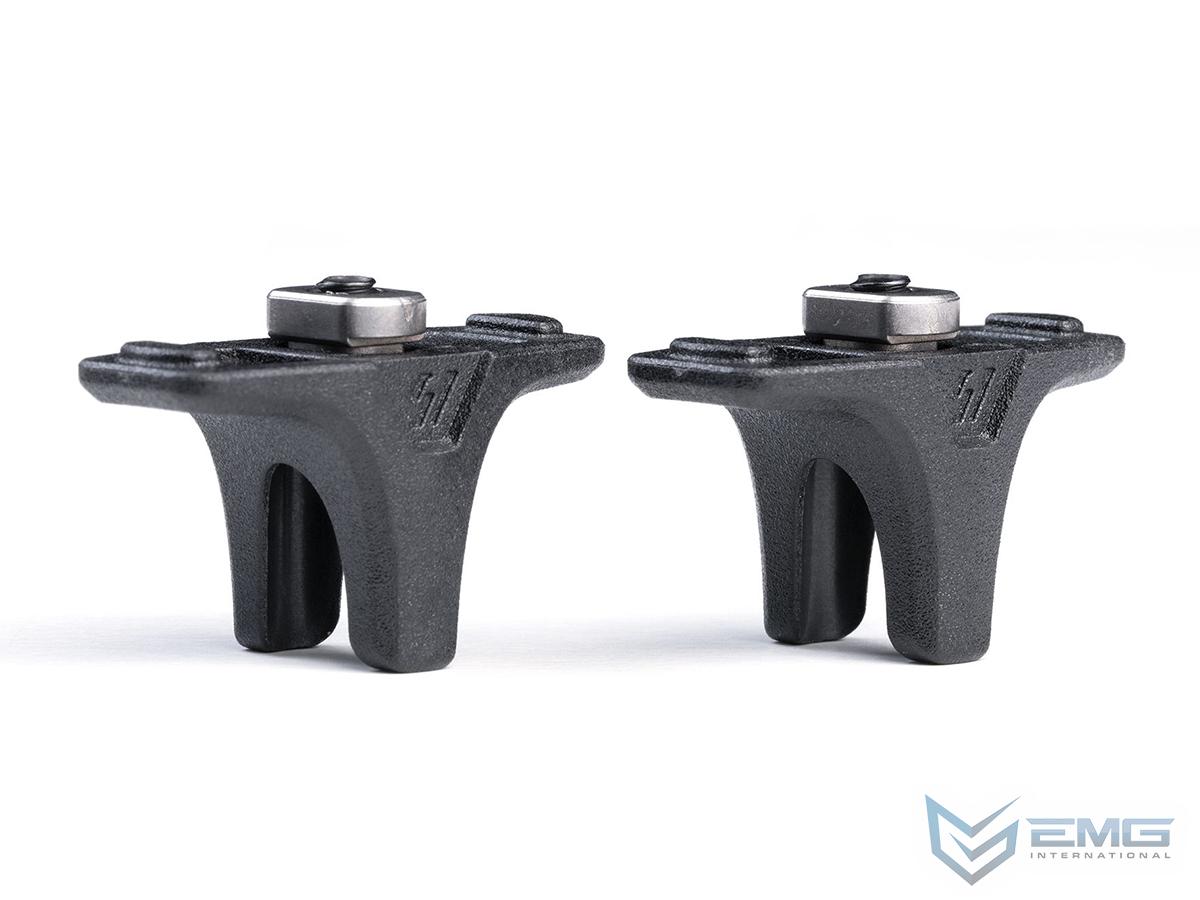 The Strike Industries Bikini Hand Stop (BHS) gives the shooter increased ergonomics and control of the weapon. The hand stop is made from durable and lightweight polymer compatible with M-LOK rails. The BHS is bi-directional and can be mounted in either direction and includes two (2) per pack. The low-profile design with all rounded corners or smooth edges help to avoid snags. The SI Bikini Hand Stop gives the shooter a quick indexing point for faster weapon deployment which can be used in a "push" or "pull" style grip. You can mount the hand stop more forward on the handguard as it's also designed to go in between your index and middle fingers. The more forward position on the handguard can help get the BHS out of the way when in a kneeling or prone position as well as other accessories and equipment. Also you can mount at 3 or 9 o'clock positions to use as a thumb ledge for applying downward pressure to mitigate recoil. Getting its name from the obvious sexy shape, the Strike Industries Bikini Hand Stop rail attachment gives you increased accuracy and stability at a super budget friendly price while barely adding any weight.