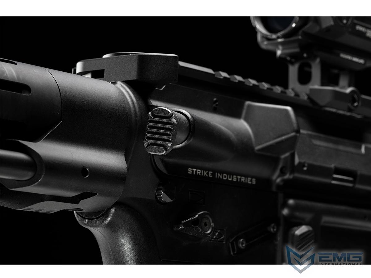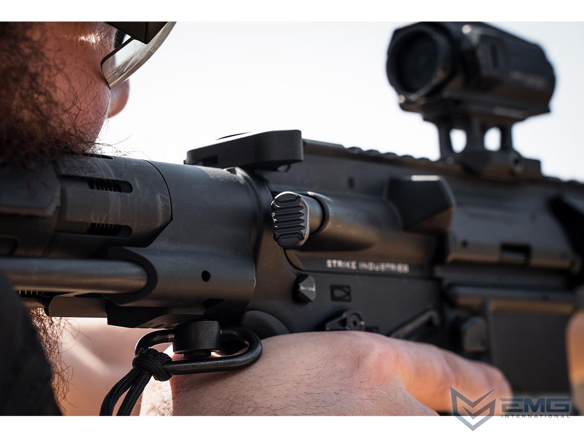 The Strike Industries AR Extended Forward Assist gives you a larger surface area to operate and your AR a unique appearance. The L-shaped forward assist is textured for positive feel and manipulation of your AR for enhanced ergonomic control. This SI Extended Forward Assist is made of lightweight 6061-T6 aluminum for those looking to retain the functionality of a forward assist, while seeking weight savings wherever they can. The forward assist pawl is constructed of tool steel to ensure positive engagement of the forward assist ratchets on compatible bolt carriers and maintain long service life. The Strike Industries Extended Forward Assist is a perfect choice on a new AR build or replace your current forward assist with some function and SI style.