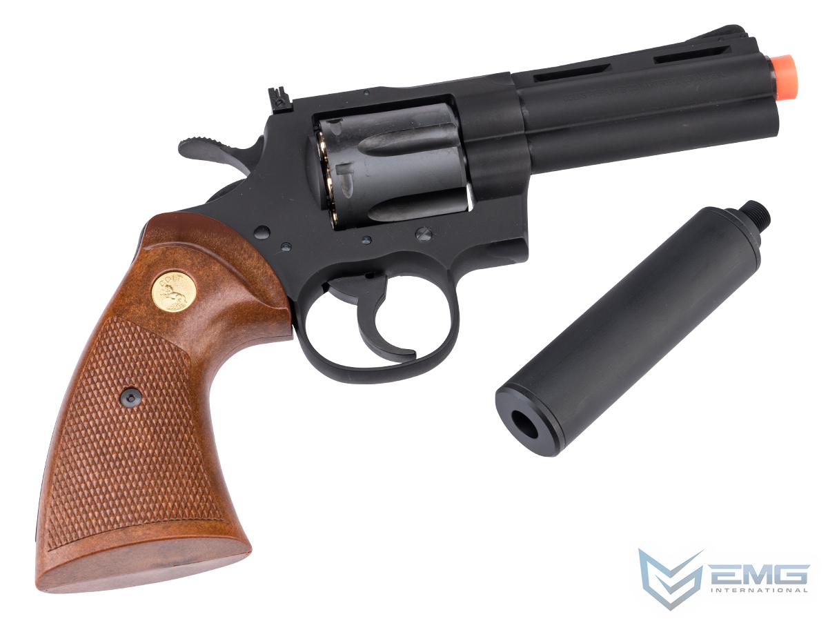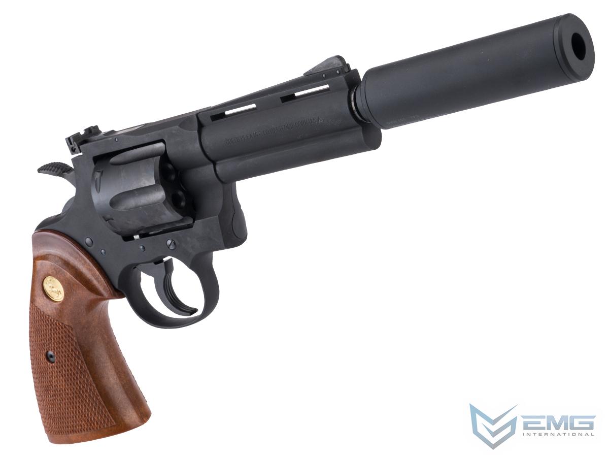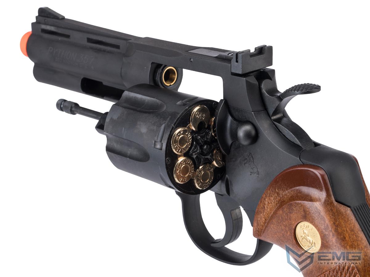 The Cadillac of the Revolvers made by the famed Japanese Airsoft Replica company Tanaka. Constructed with a beautiful Nickle-plated finish, Colt Python .357 roll marks, and realistic weight, this revolver is a beautiful and unique piece for those who wish to reenact old police kits of the late 50's, or display as a collector's piece. Realistic functionality helps to add to the authenticity of this revolver, with a double-action trigger and functionally rotating cylinder. Gas and BBs for the revolver are stored in the Cylinder, to eliminate the need for any additional CO2 cartridges or tools to be carried and potentially lose or accidentally dropping any shells around.
