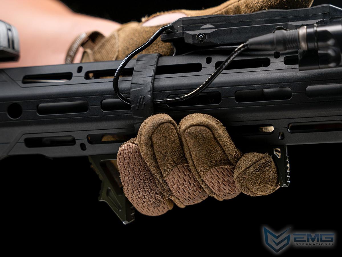 The Strike Bang Band secures weapon light/laser cables to help organize your gear while adding an anti-slip surface on your handguard. You can flip the Strike Bang Band so the cable channel guide can be used on the outside or the inside making it reversible and adaptable for your specific setup and needs. The cable channel fits into M-LOK compatible slots so you can keep your handguard as slim and sleek as possible. The grooves and anti-slip texture is on both sides of the band so you don’t have to pick which is the best surface. The positive tactical feeling enhances your handguard and/or magazine with an additional gripping surface for your support hand. Organize your cables with some SI style. The 2” diameter by 0.60” wide Strike Bang Band is strong and durable for you to also use in other applications when a standard rubber band just is not enough. Use the Strike Bang Band to add more tension to your buttstock latch or S rolling sling to keep it out of the way for vehicle use or neat storage in safe. Made of Nitrile Butadiene Rubber (NBR), it withstands heat up to 226° F. The Strike Bang Band is part of the growing line of Strike Industries Cable Management System® products that offers alternatives in cable organization and management. SI is constantly developing new parts and accessories to be a total systems provider for every aspect of your weapon.