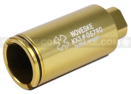 NOVESKE KX3 ADJUSTABLE AMPLIFIER FLASH HIDER, LIMITED LIGHT GOLD COLOR WITH JOHN NOVESKE SIGNATURE
