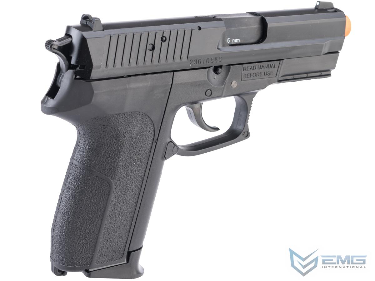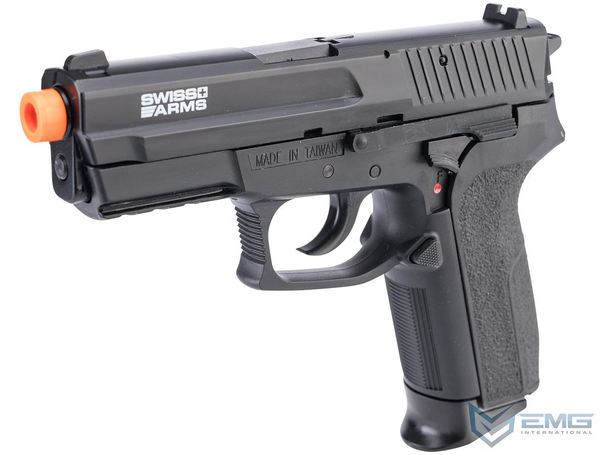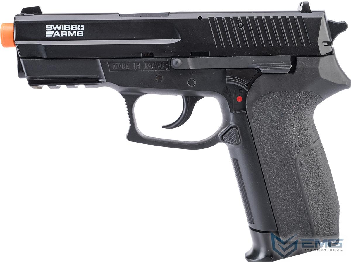 The Cybergun Swiss Arms licensed SA2022 is a high-quality, heavy-duty spring powered pistol built with longevity and effectiveness in mind. This isn't your standard cheap spring pistol, the SA2022 has remarkable build quality and boasts excellent range and accuracy when compared to lesser spring pistols. The SA2022 features a true 1-to-1 scale to its real firearm counterpart and is made from high-quality polymers and a heavyweight build to give you a realistic and enjoyable shooting experience. The pistol features the same great ergonomics as the real firearm and includes several of the same amenities such as the built-in low-profile sights, rubberized grip panels, and a built-in accessory rail for optional lights and lasers. With the Swiss Arms SA2022 spring pistol you no longer need to compromise quality for a lower price point.