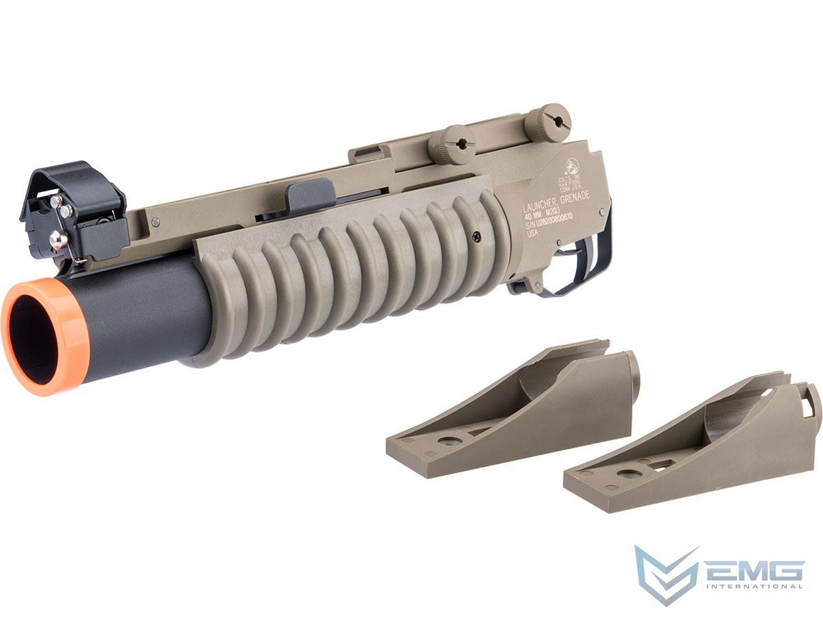 Cybergun Polymer Colt Licensed M203 40mm Grenade Launcher for M4 / M16 Series Airsoft Rifles (Model: Dark Earth / Short / Avengers 120rd Package)