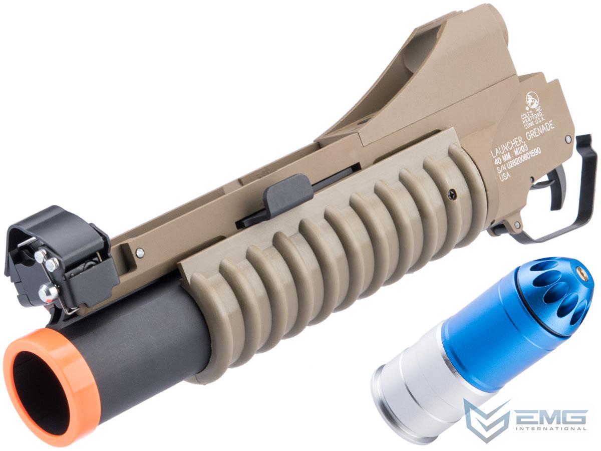 Colt Licensed M203 40mm Grenade Launcher for M4 / M16 Series Airsoft Rifles w/ Metal Barrel (Model: Dark Earth / Short / Evike.com 120rd Package)