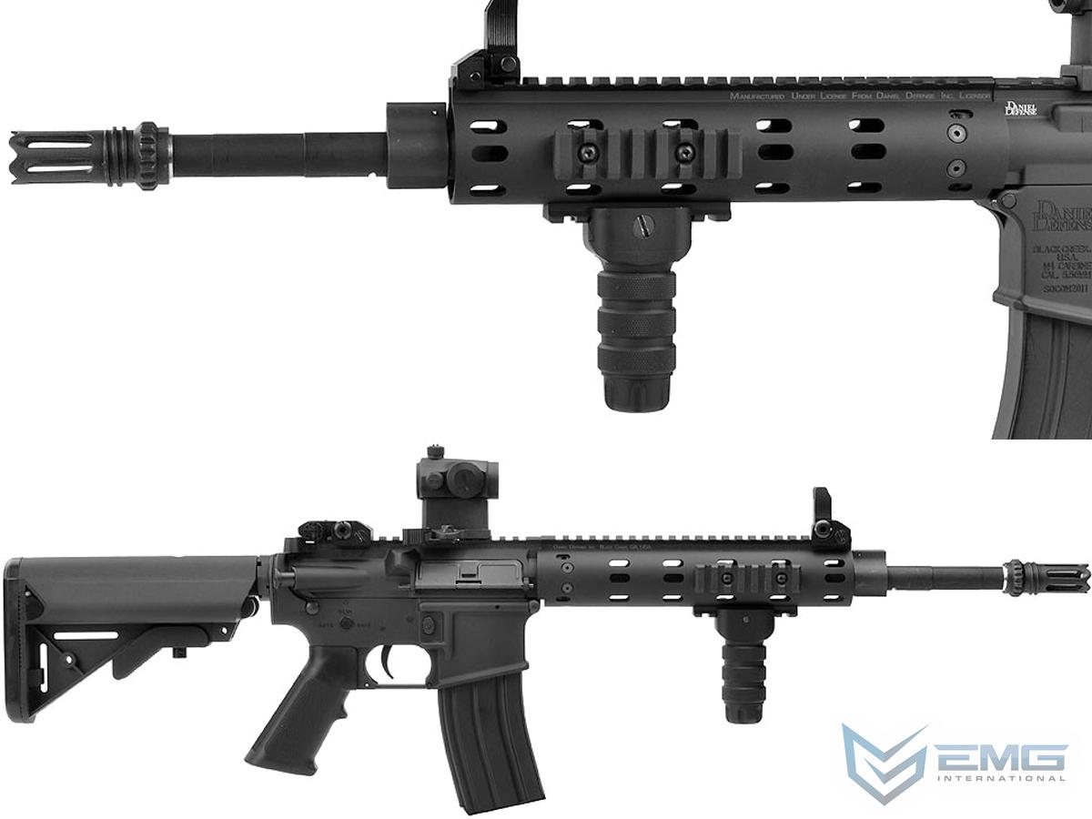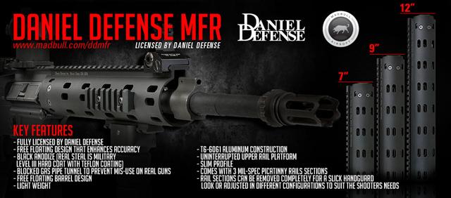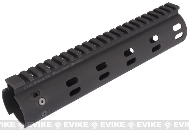 The Daniel Defense MFR (Modular Float Rail) is a CNC Machined Modular Free Float Handguard. It is specifically designed to adequately cover a low profile gas block on a carbine or mid-length gas system barrel. The MFR has been engineered to provide each shooter with the ultimate in modular adaptability. Should the shooter desire, the tube can be run slick with an uninterrupted top rail that runs the length of the tube. In addition, the installation of Modular Picatinny Rails is accomplished with little effort. This allows you to have rails anywhere you need them and nowhere you don't. The slim profile feature of the MFR keeps the shooter's support hand close to the bore which aids in firearm manipulation, and the design and construction allows for the attachment of Picatinny Rail Sections at standard 90 degree or offset angles.