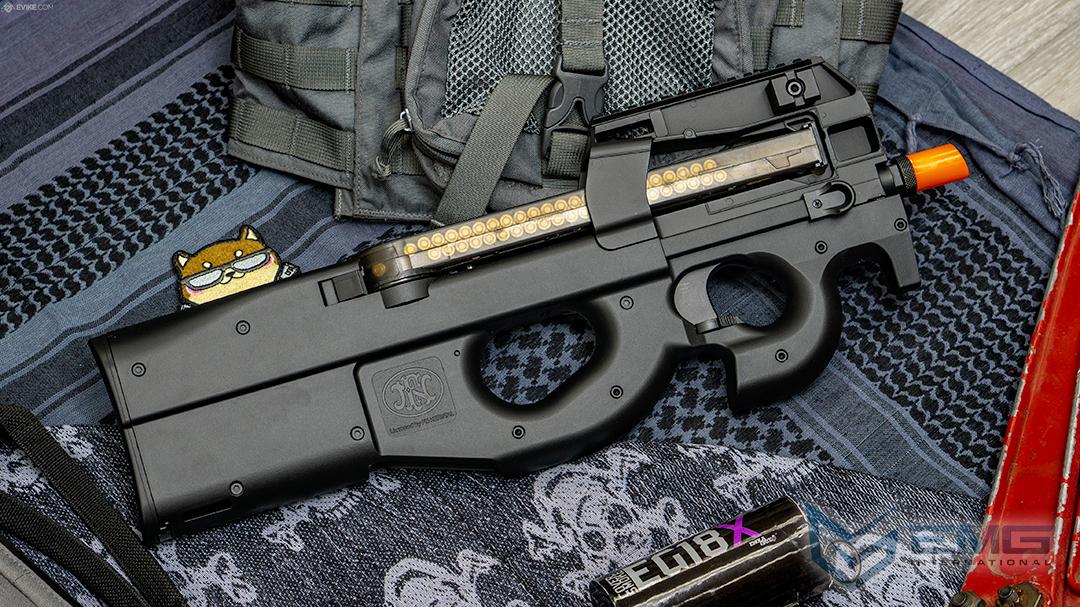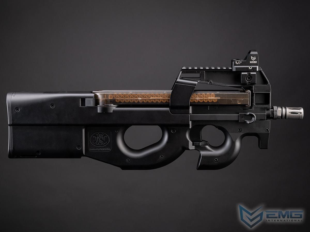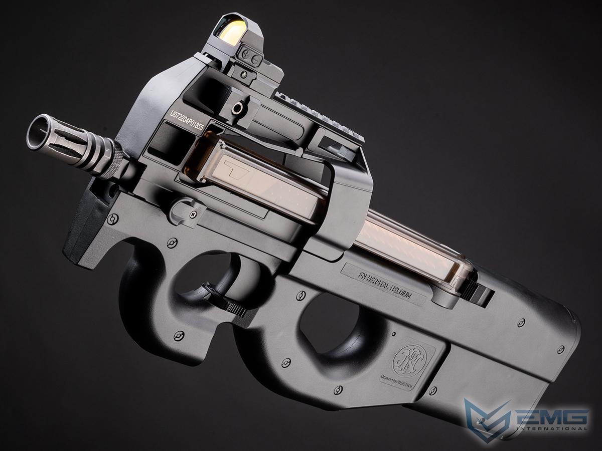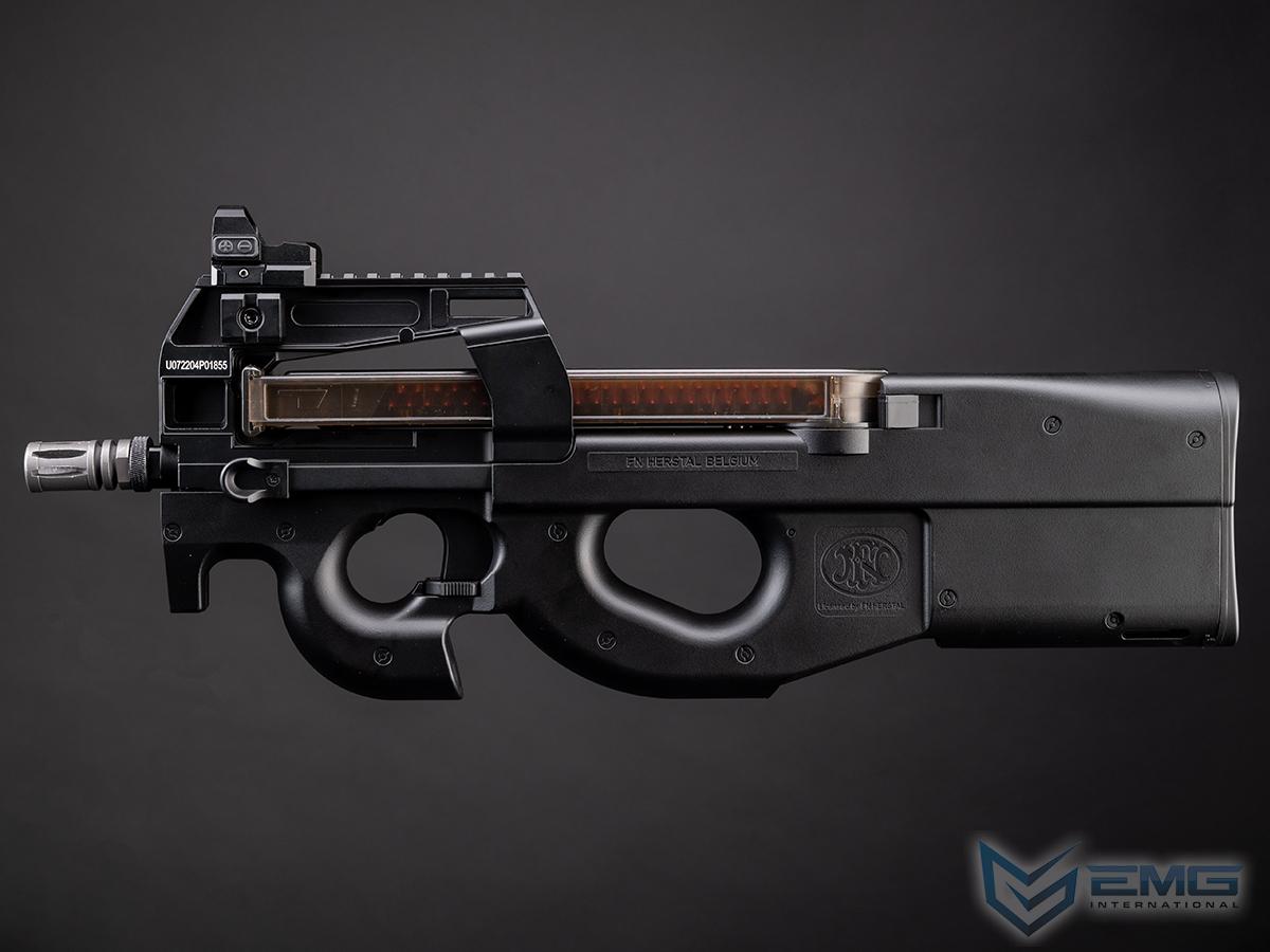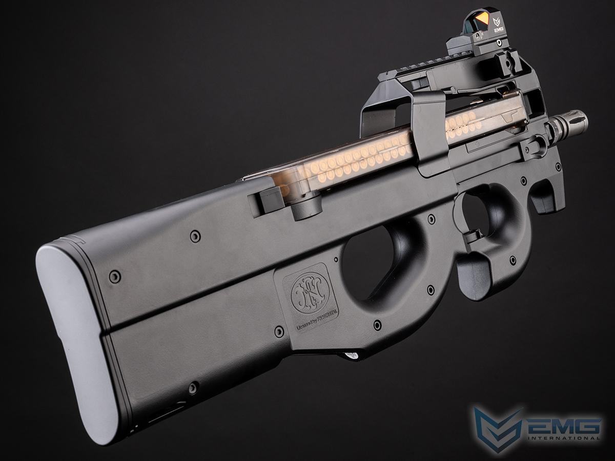 The FN® Licensed Airsoft P90 accurately replicates the great handling and ergonomics of the real P90 with its fully ambidextrous control layout and comfortable grip. Just like the actual P90, the FN® Licensed Airsoft replica consists of a durable reinforced polymer frame with metal barrel and upper assembly. Despite its small size, the P90s bullpup design allows for a considerably longer barrel than most sub-machine gun class weapons for improved range and accuracy. Fast, lightweight, and compact, the P90 is one of the most effective weapons for CQB and room clearing.