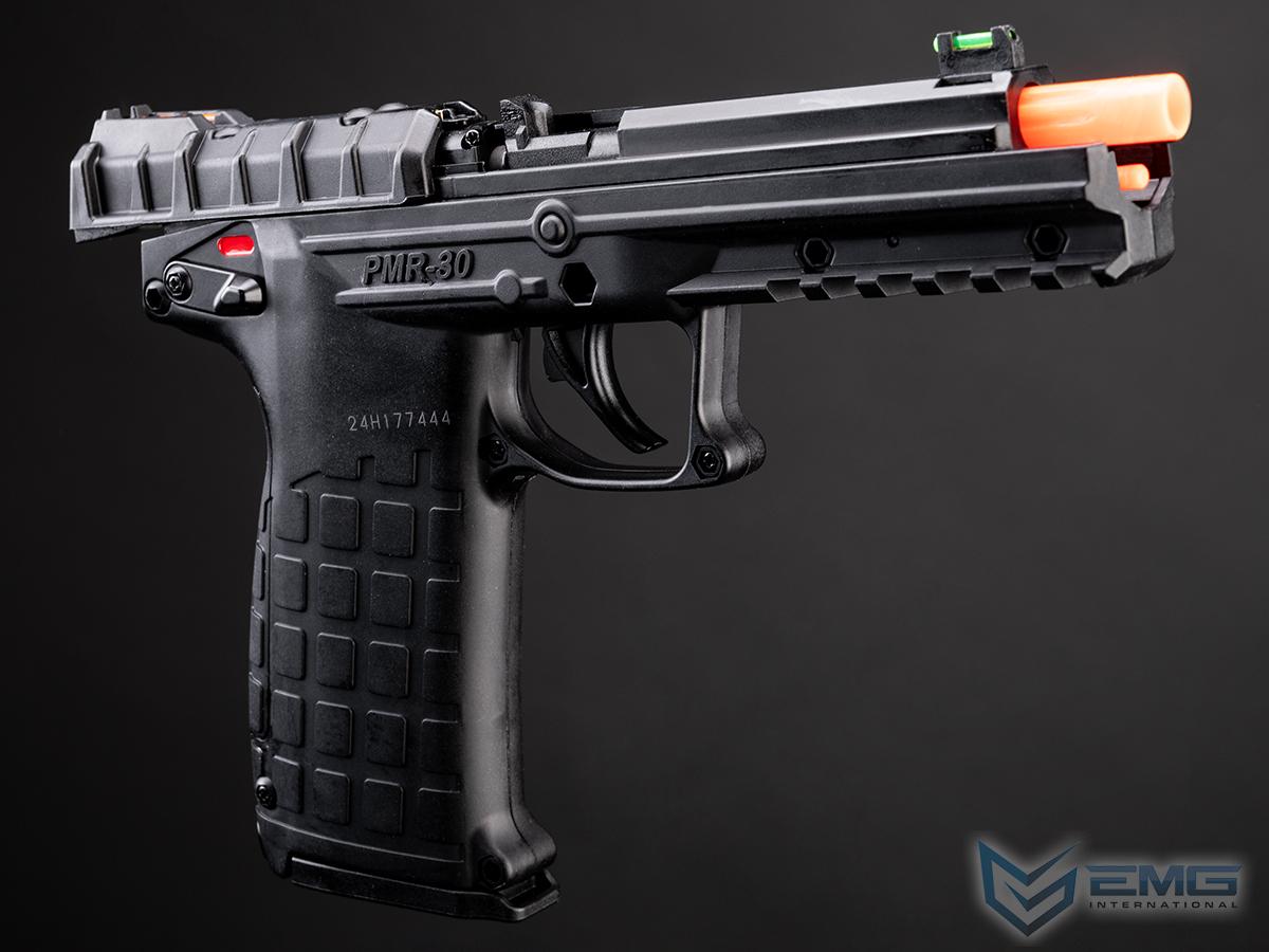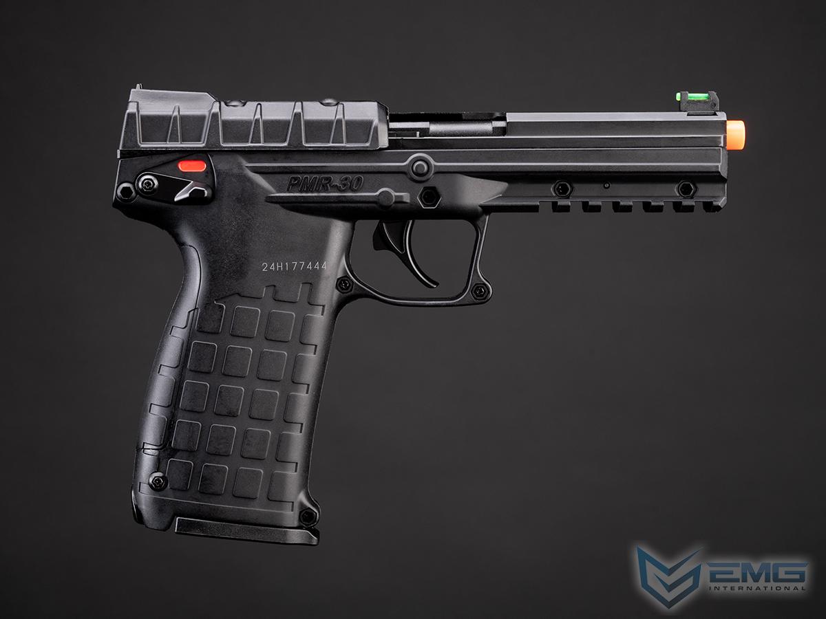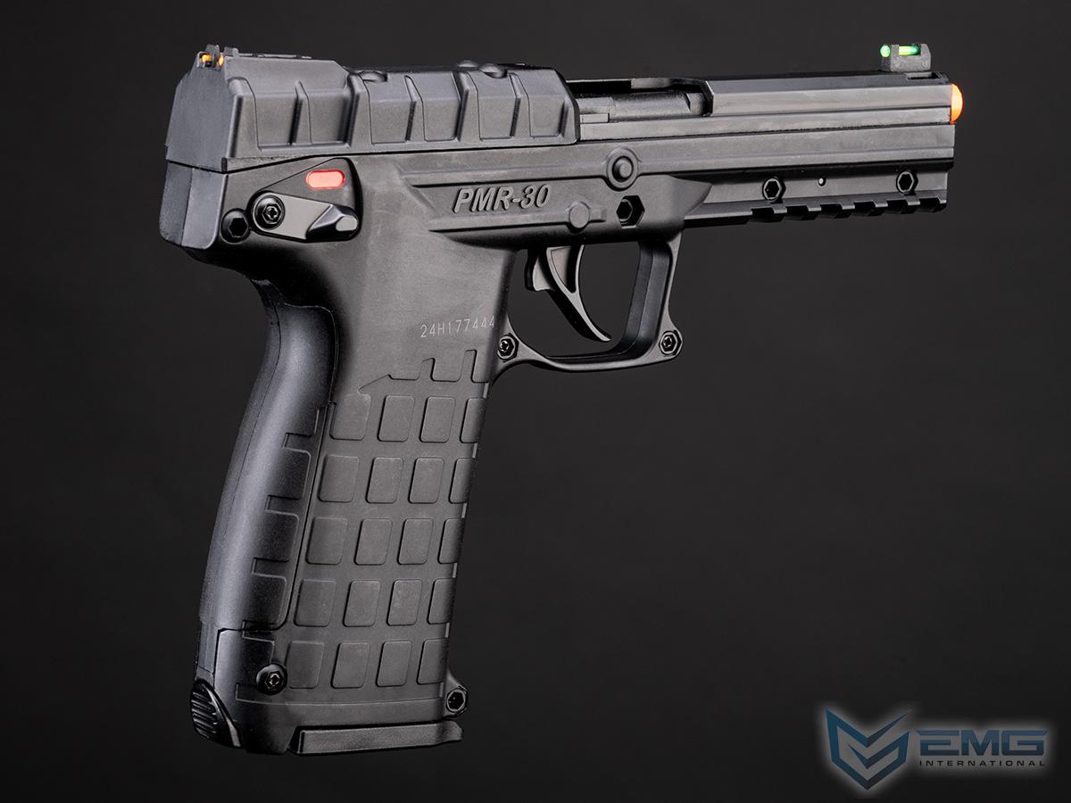 The PMR-30 is a light weight, full size pistol chambered for the flat-shooting .22 Magnum cartridge (.22WMR). The PMR-30 operates on a unique hybrid blowback/locked-breech system. This operation system allows for the use of a wide variety of ammunition as it seamlessly adjusts between locked breach and blowback operation, depending on the pressure of the cartridge. It uses a double stack magazine of a new design that holds 30 rounds and fits completely in the grip of the pistol. The trigger is a crisp single action with an over-travel stop. The manual safety is a thumb activated ambidextrous safety lever (up for SAFE, down for FIRE). The slide locks back after the last shot and a manual slide lock lever is also provided. The light, crisp trigger pull and fiber optic sights make the PMR-30 ideal for target shooting and hunting small game.