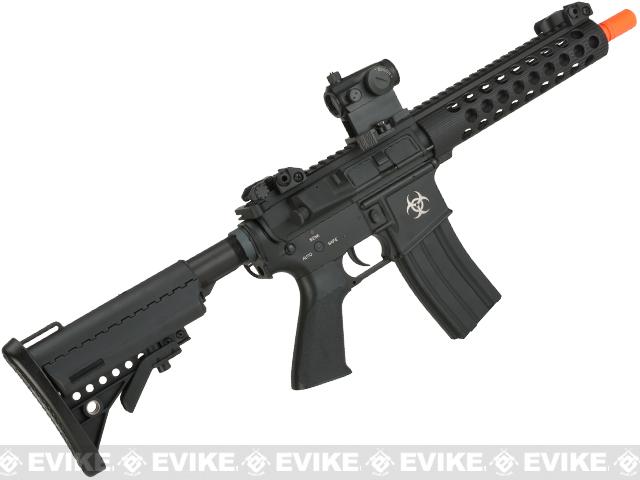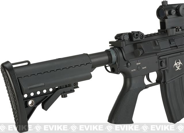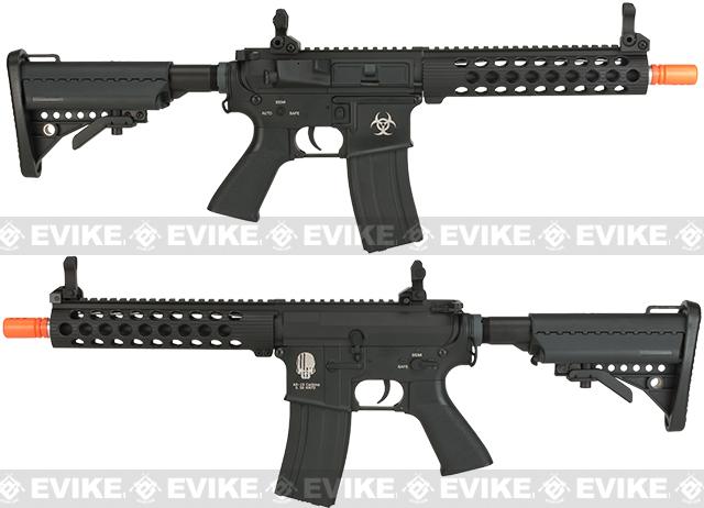 6mmProShop Troy Industries Licensed M4 Airsoft AEG Rifle w/ Alpha Battle Rail by E&C (Color: Black / 9" Rail / 400FPS)