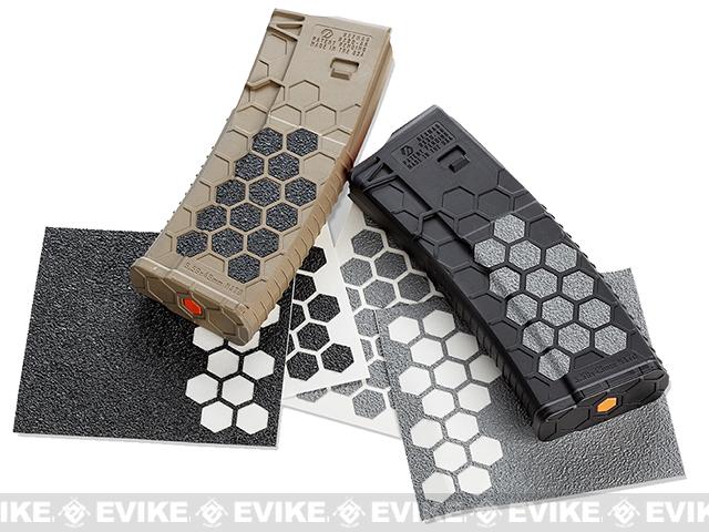 - One sheet (46 hex shapes) is enough to cover both sides of one Hexmag magazine if every hex cavity is filled
